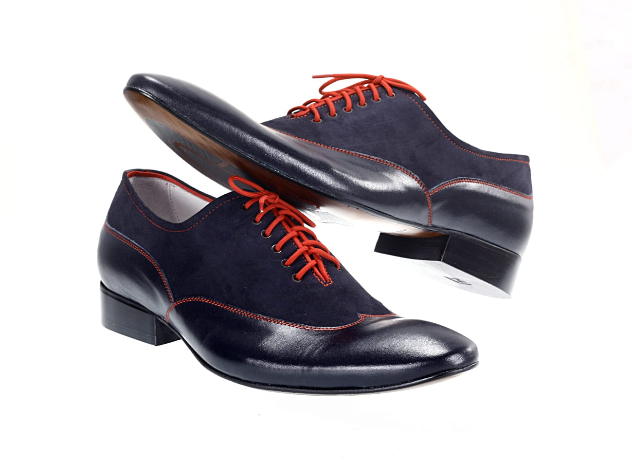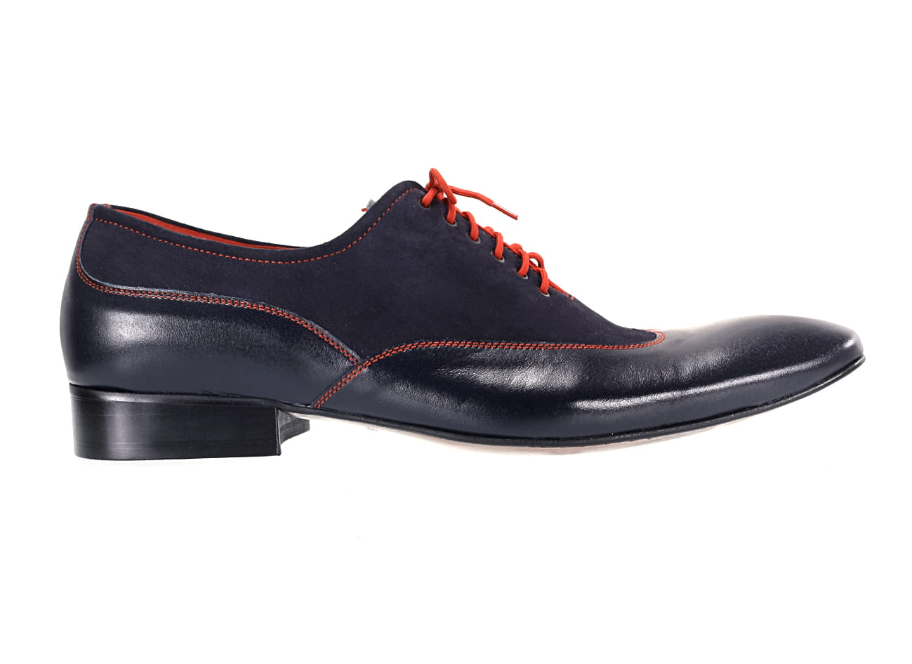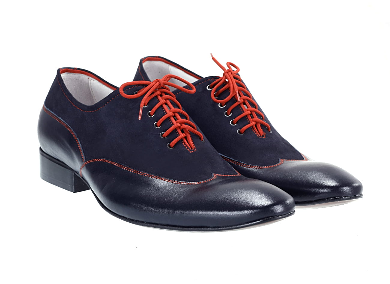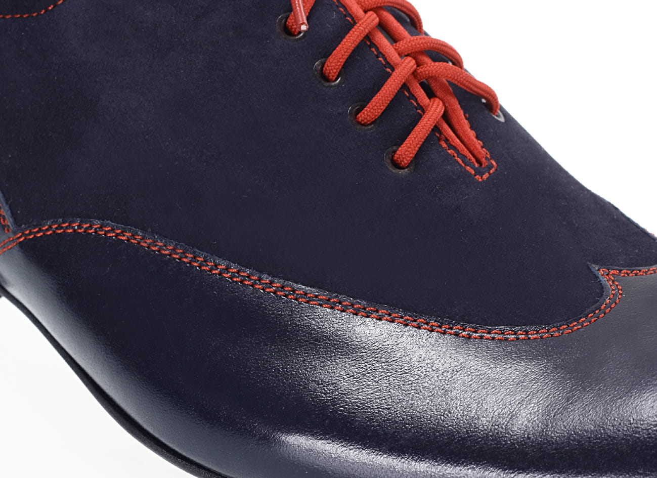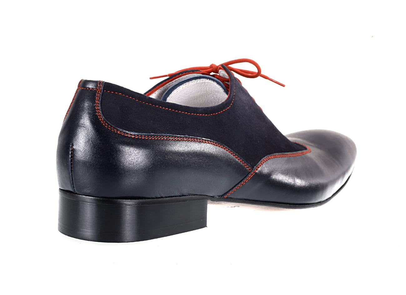 Półbuty sznurowane wizytowe granatowe czerwone skóra zamsz [MODEL: 820-91 Blue arcadia/camoscio]