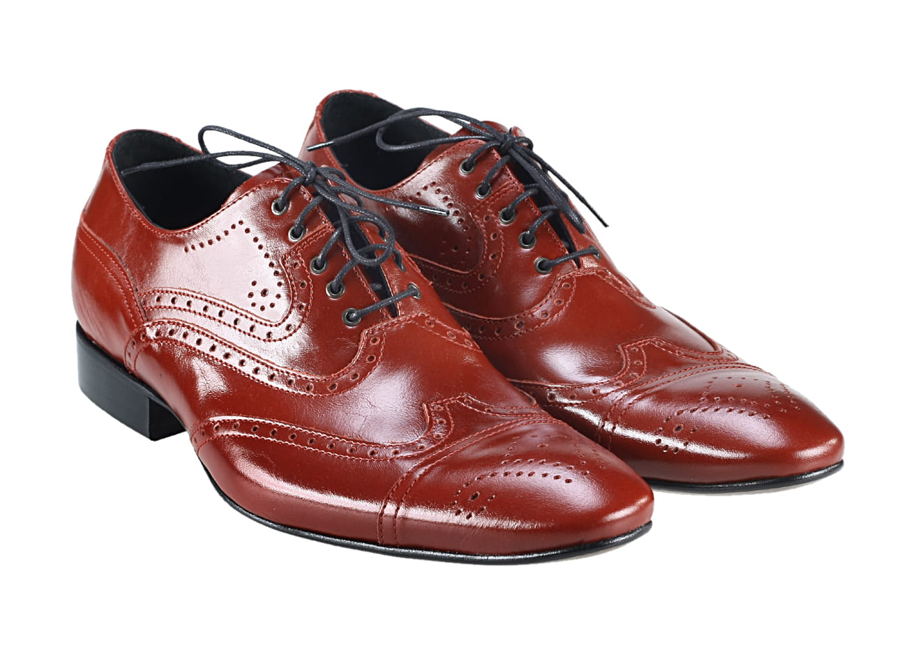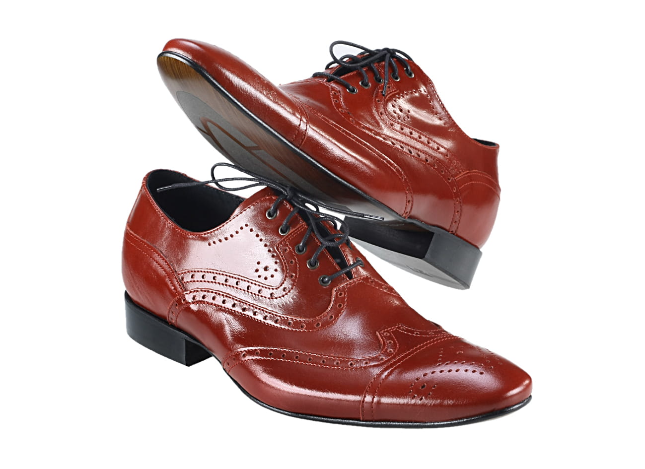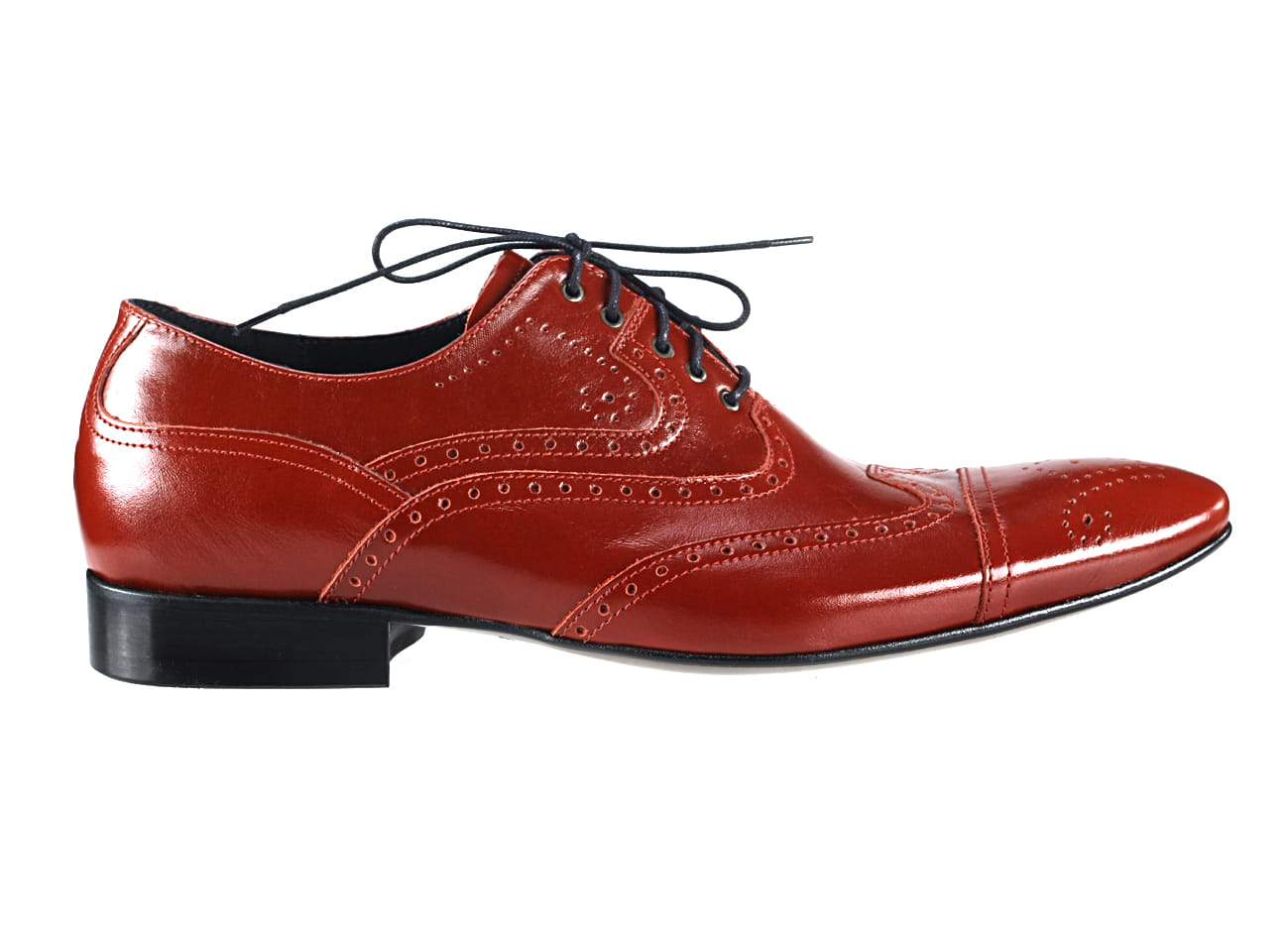 Obuwie półbuty wizytowe buty męskie czerwone szkoty brogsy skórkowe