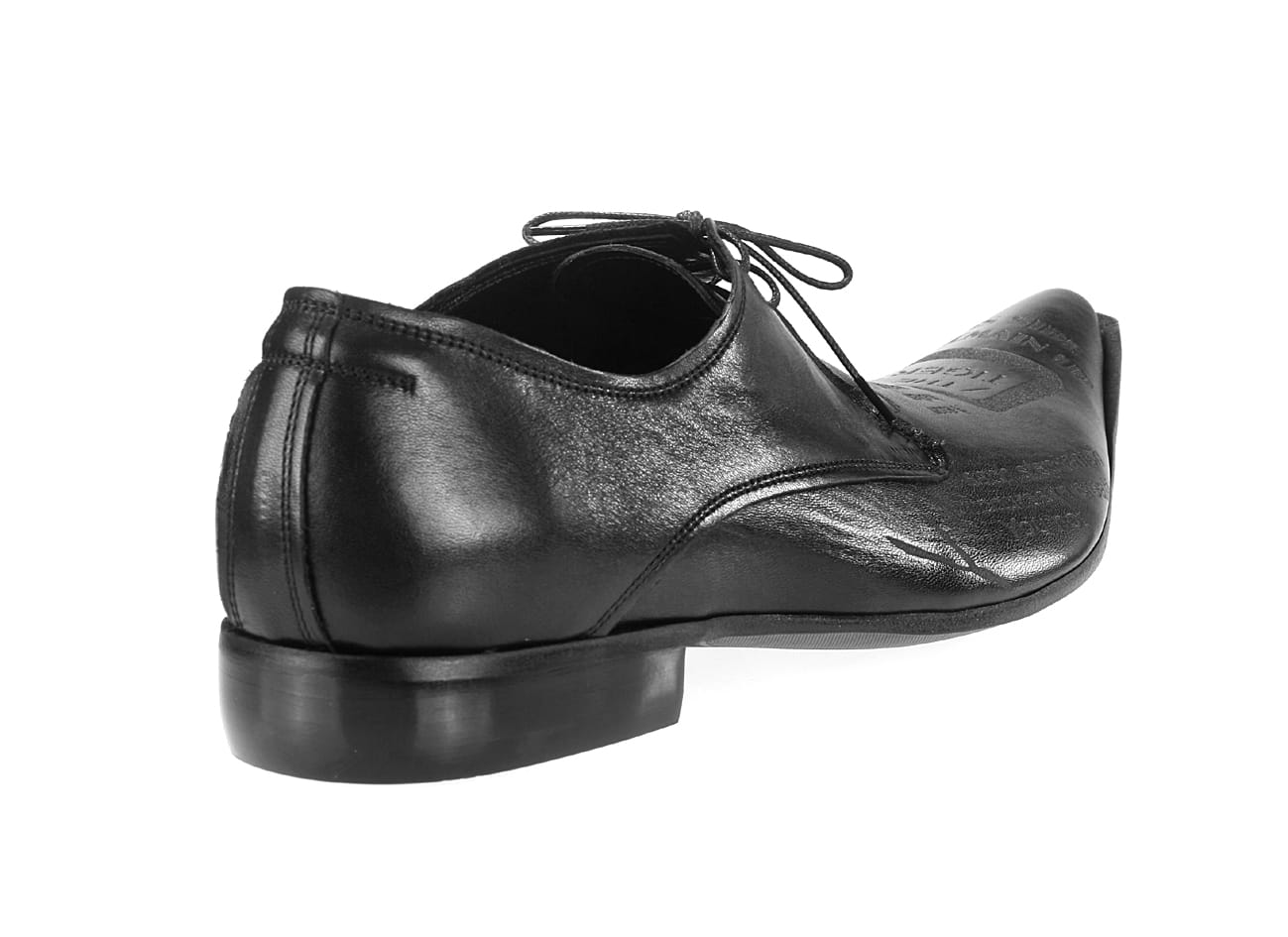 Półbuty wizytowe odważne szpic sznurowane skórkowe [MODEL: 805-01 Nero euro/laser]