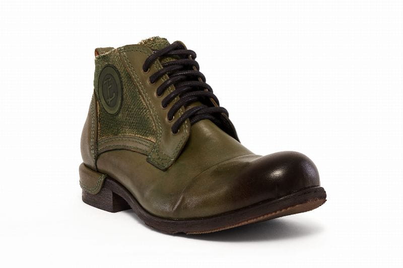 Półbuty włoskie glany męskie wysokie zielone sznurowane skórkowe [MODEL: 826-16 Oliwka]