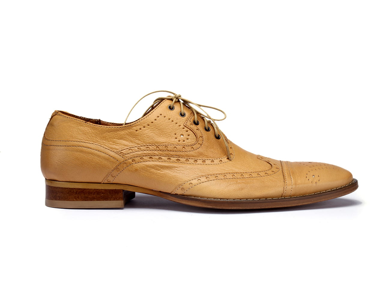 Skórzane sznurowane półbuty męskie wizytowe szkoty beżowe [MODEL: 1031-52 Beige]