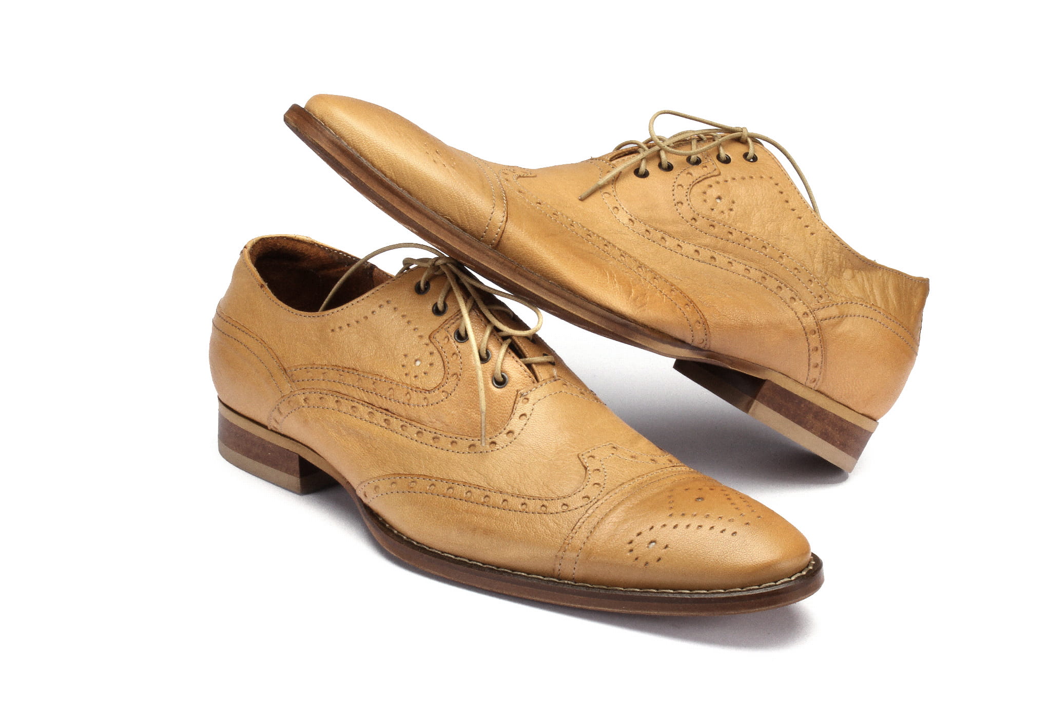 Skórzane sznurowane półbuty męskie wizytowe szkoty beżowe new