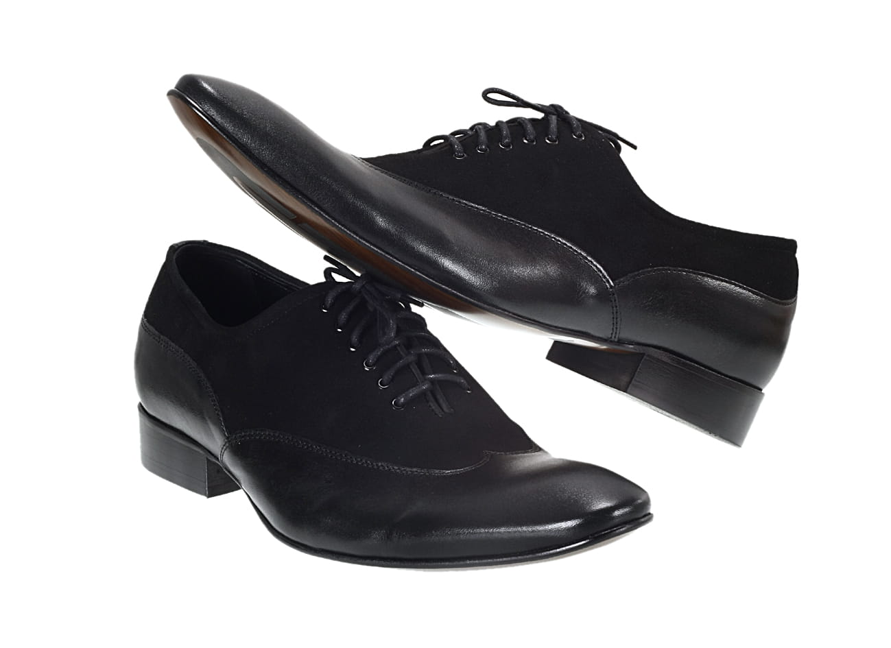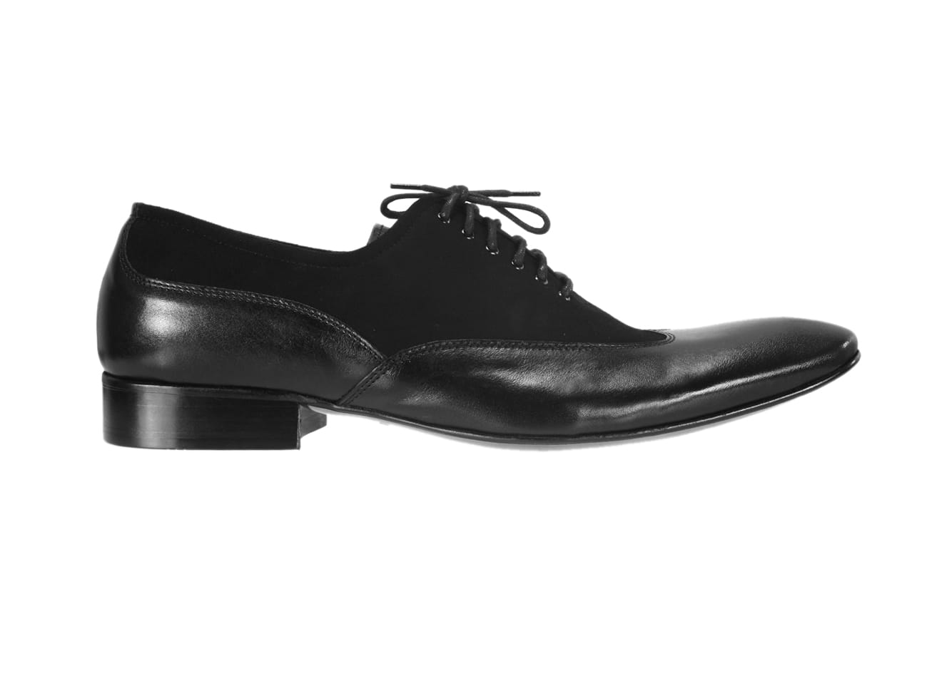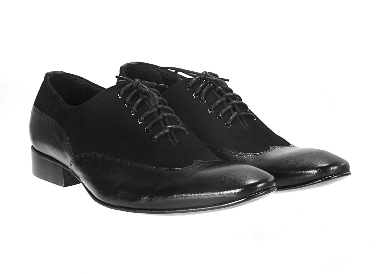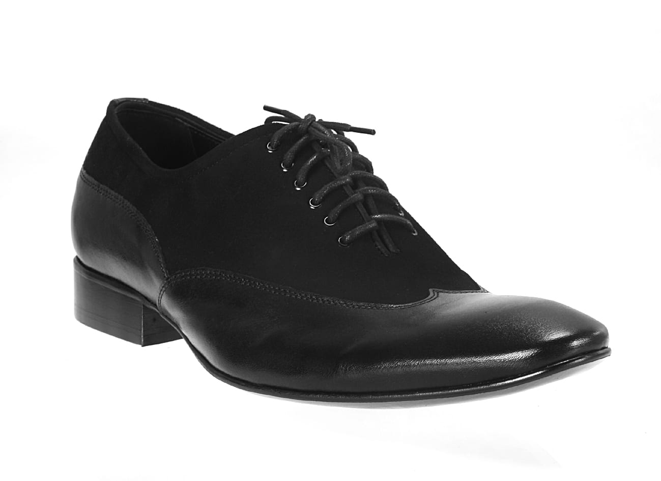 Zapytaj o Sznurowane obuwie męskie włoskie skórzane czarne zamszowe [MODEL: 920-01 Nero euro/camosio]