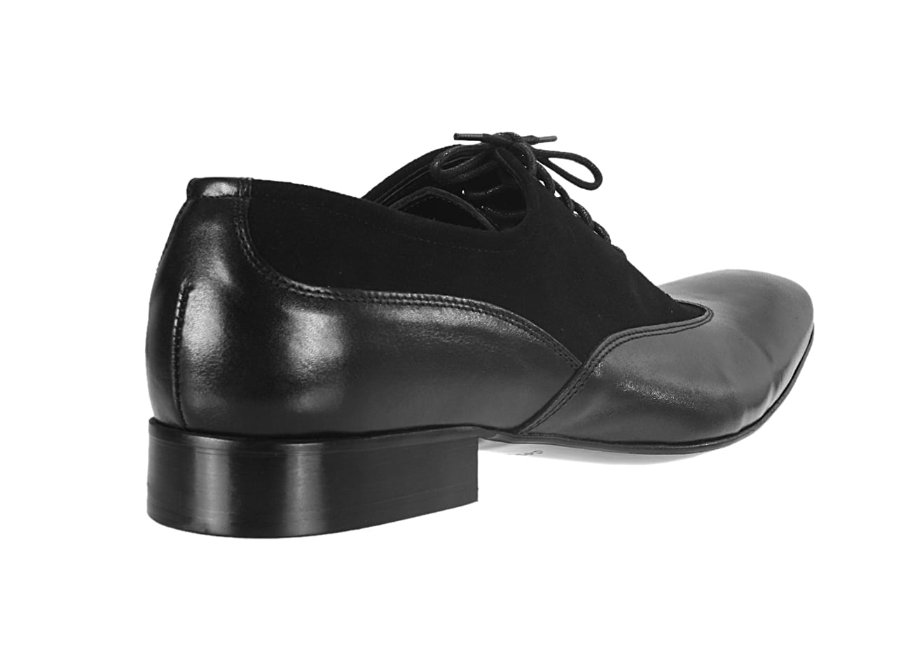 Sznurowane obuwie męskie włoskie skórzane czarne zamszowe [MODEL: 920-01 Nero euro/camosio]