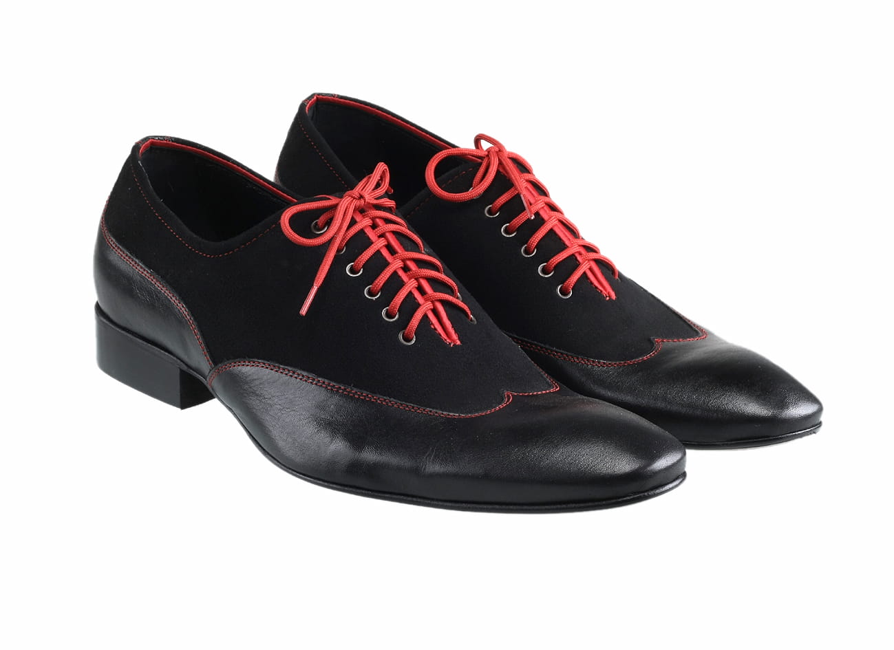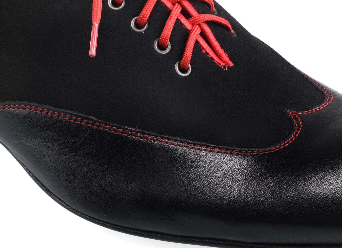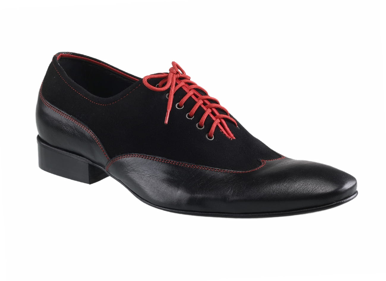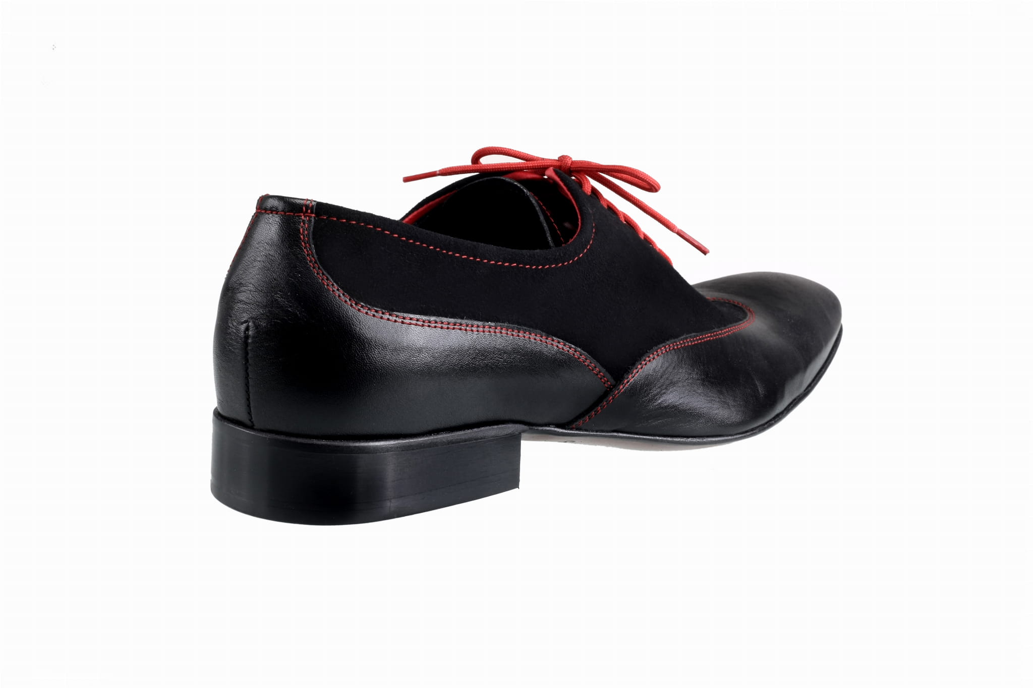 Sznurowane obuwie włoskie skórzane męskie czerwona sznurówka [MODEL: 920C-01 Nero euro/camosio]
