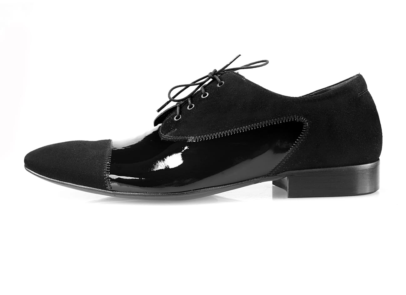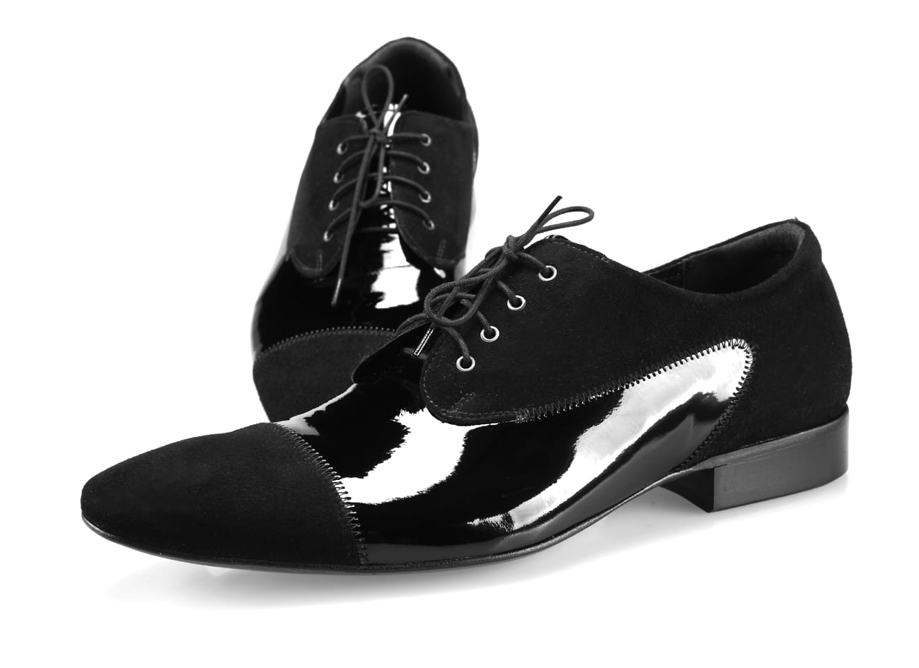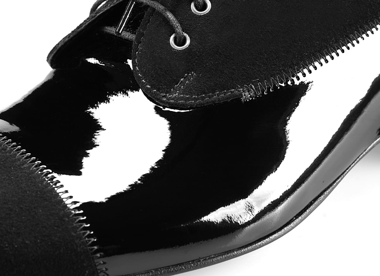 Sznurowane półbuty męskie wizytowe czarne skórzane lakierki zamsz 38-46 [MODEL:711-01 nero riva+camoscio]