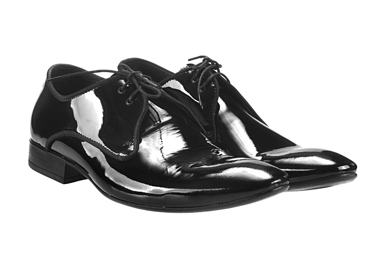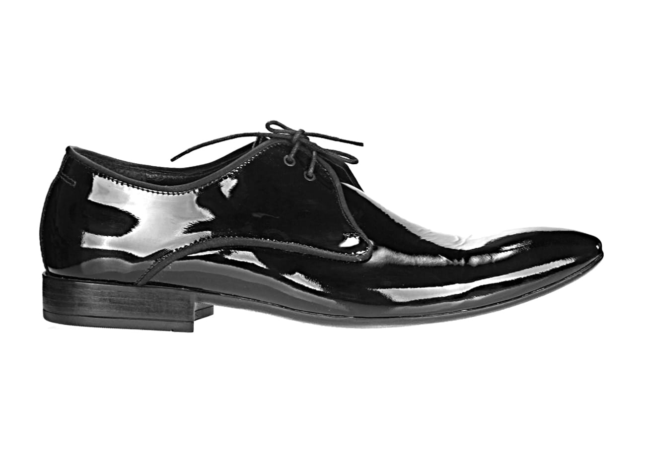 Zapytaj o Sznurowane włoskie półbuty męskie skórzane wizytowe lakierki czarne [MODEL: 760L-01 nero vernice + satyna]