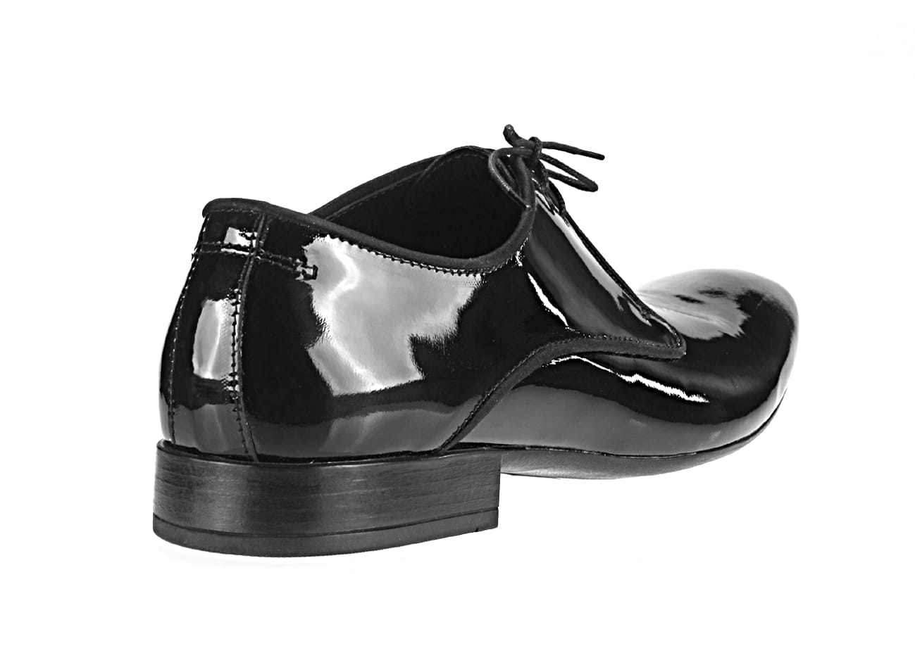 Sznurowane włoskie półbuty męskie skórzane wizytowe lakierki czarne [MODEL: 760L-01 nero vernice + satyna]