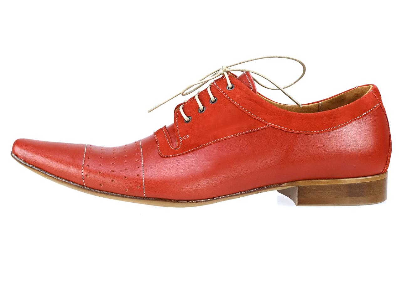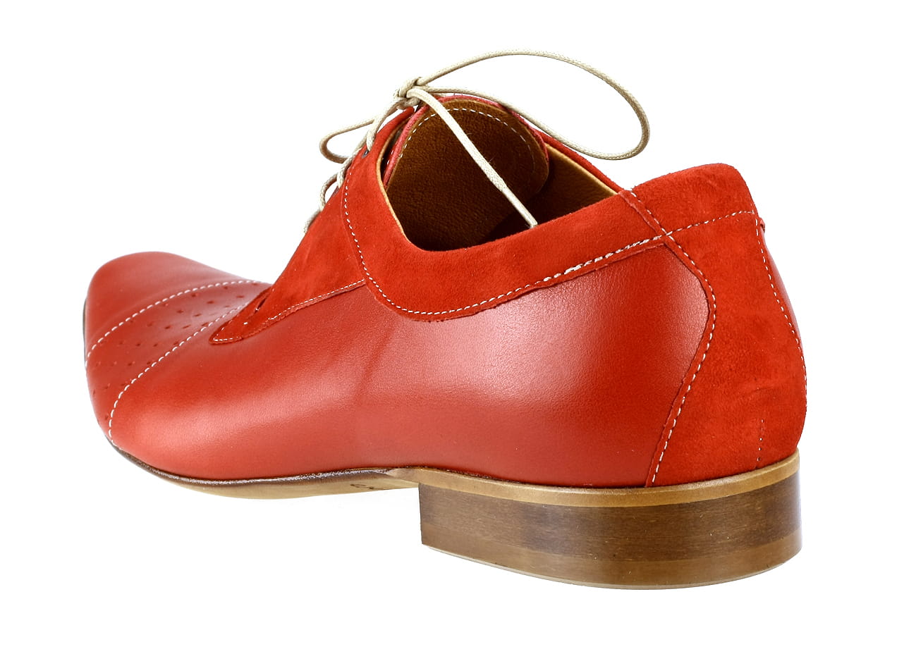 Sznurowne włoskie półbuty męskie skórzane czerwone broksy derby oxford 38-46 [MODEL: 698B-11 Rosso arcadia]