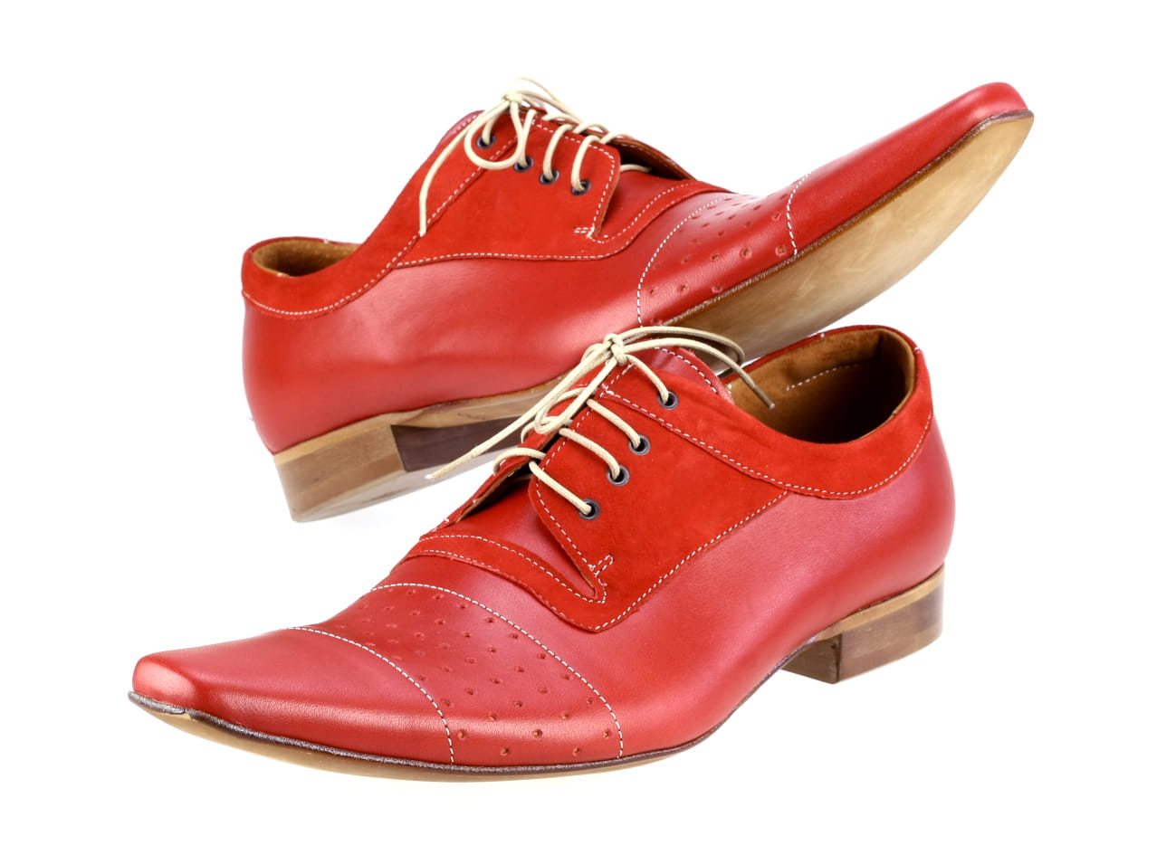 Sznurowne buty włoskie półbuty męskie skórzane czerwone buty kolorowe broksy derby oxford obuwie letnie