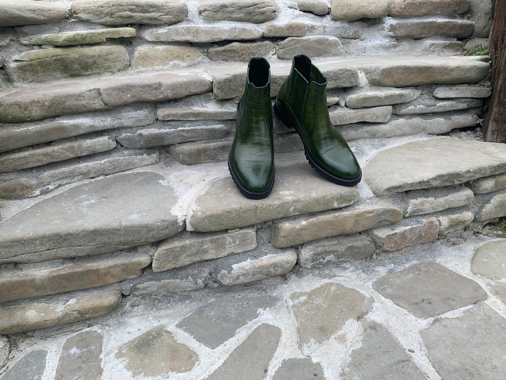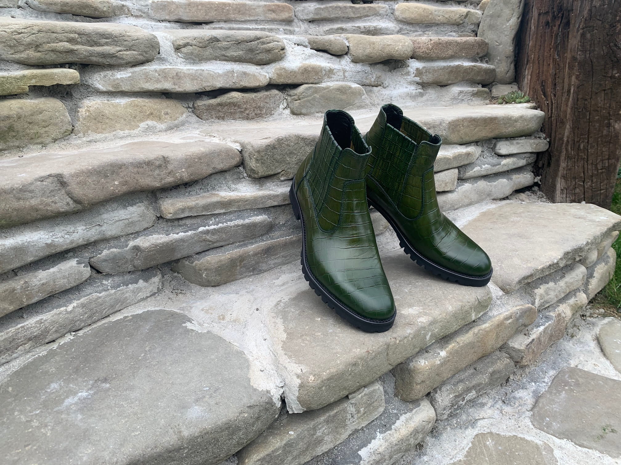 Sztyblety botki buty do kostki skórzane brązowe buty kolorowe wsuwane obuwie męskie zielone ocieplane