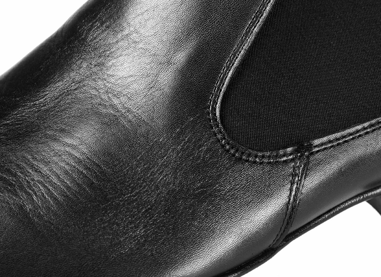 Tradycyjny obcas 2.5 cm.podbity gumowym flekiem minimalizującym jego ścieranie.