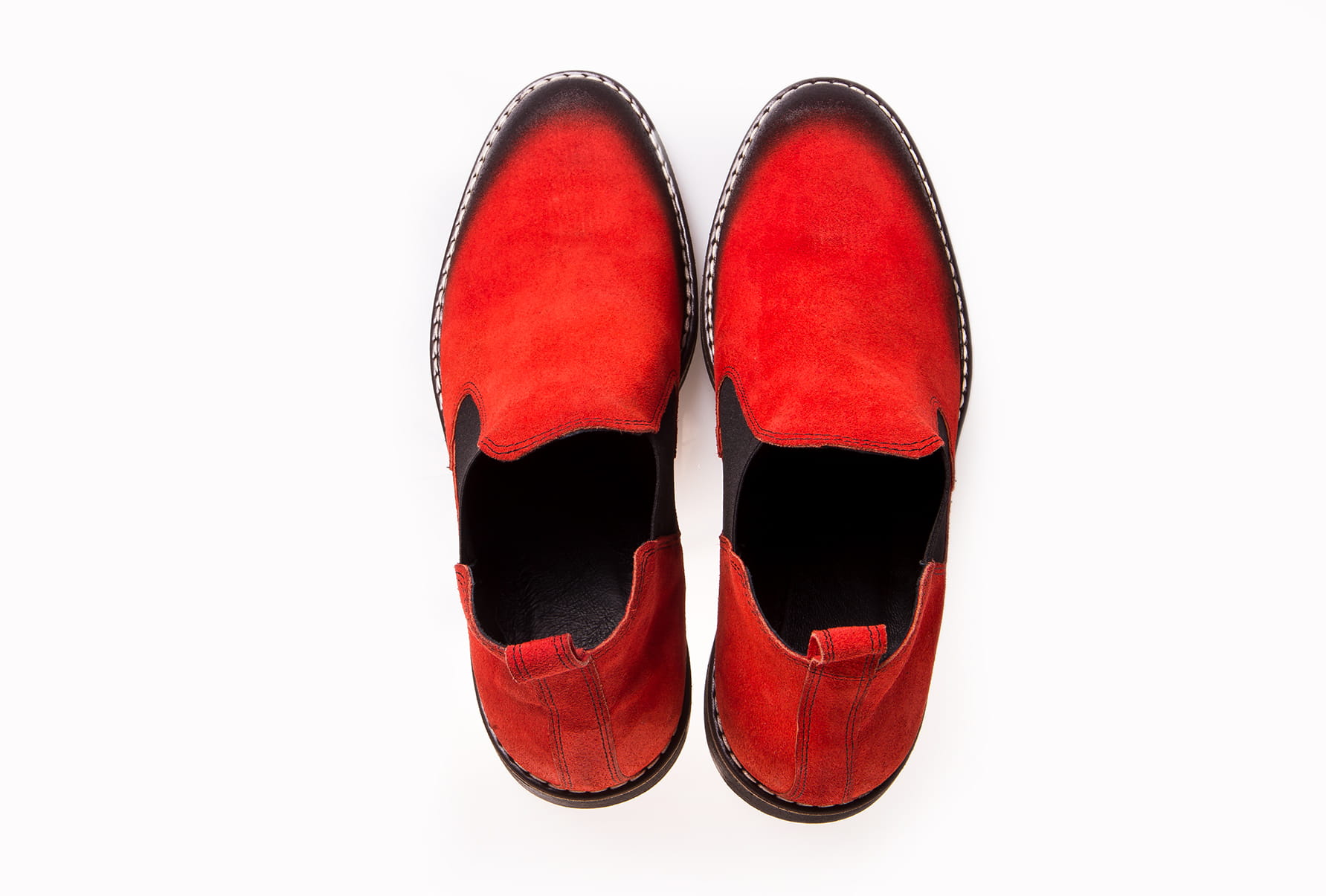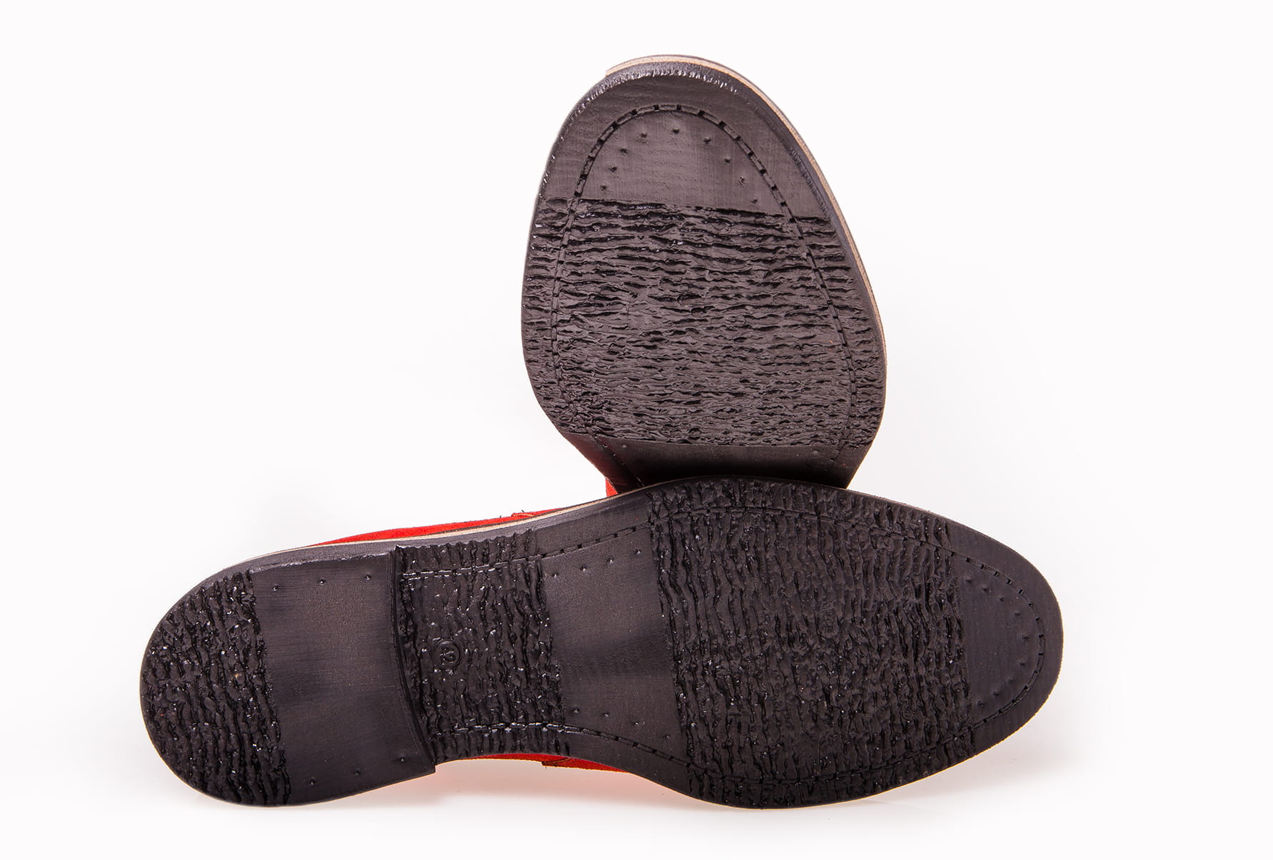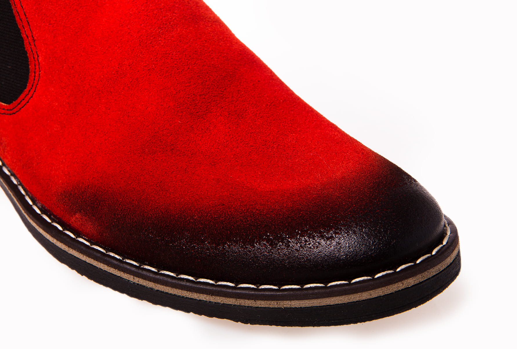 Sztyblety męskie wsuwane skórzane zamszowe czerwone czarne do kostki [MODEL: 917-11 Camoscio rosso]