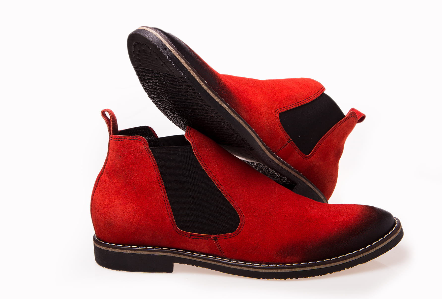 Zapytaj o Sztyblety męskie wsuwane skórzane zamszowe czerwone czarne do kostki [MODEL: 917-11 Camoscio rosso]