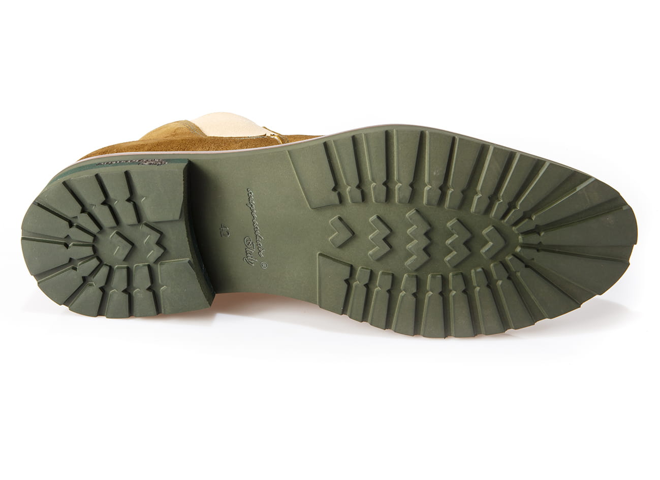 Oryginalna podeszwa sprawia że buty są bardzo lekkie a dodatkowa kiedra (otok) w naturalnym kolorze w okół spodu nadaje odpowiedniego charakteru