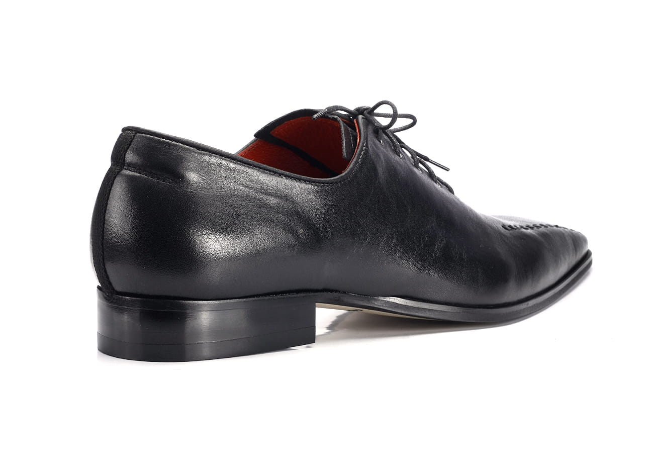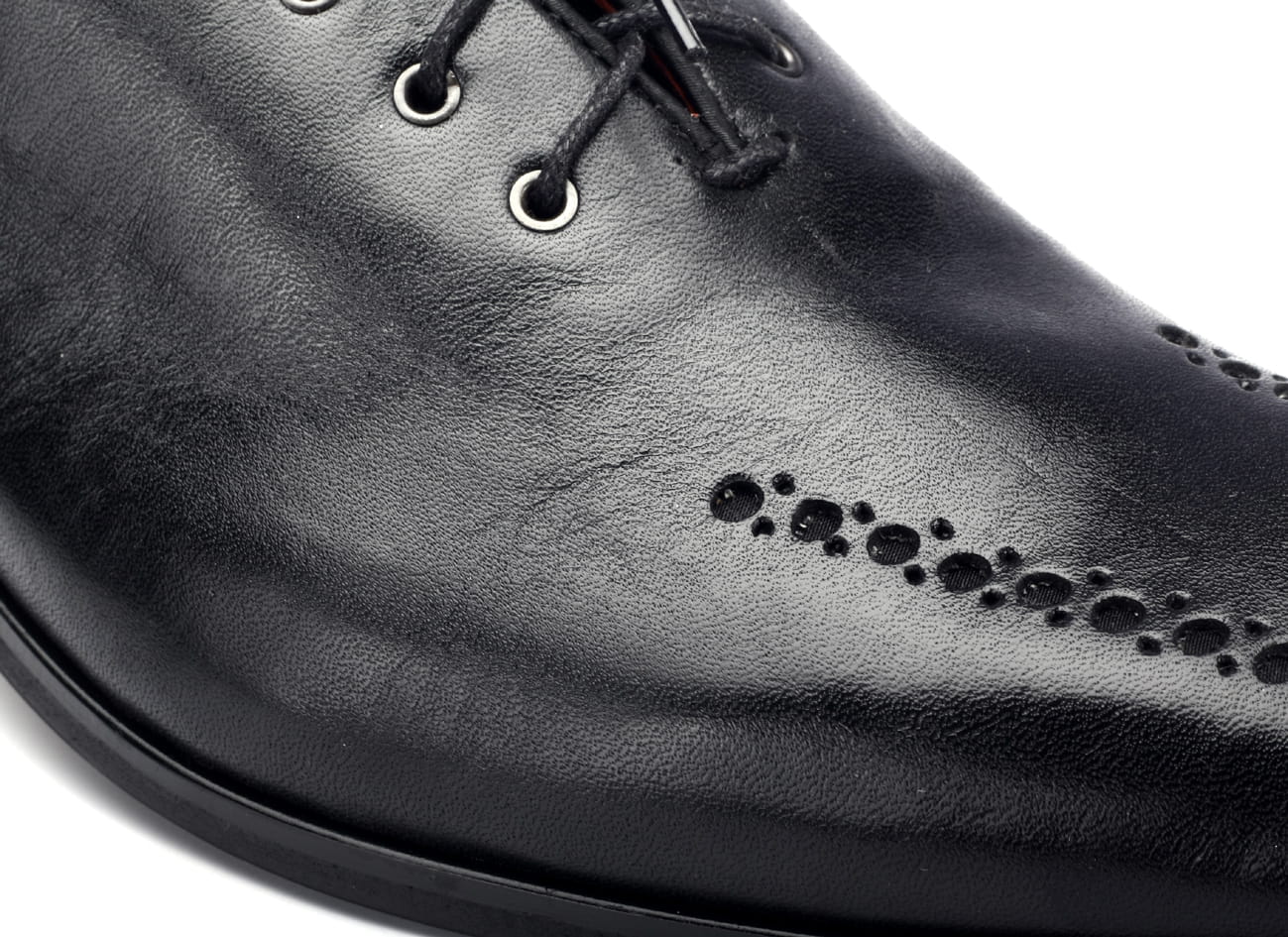 Wizytowe półbuty męskie czarne sznurowane skórkowe zdobienia haft [MODEL: 975-01 Nero]