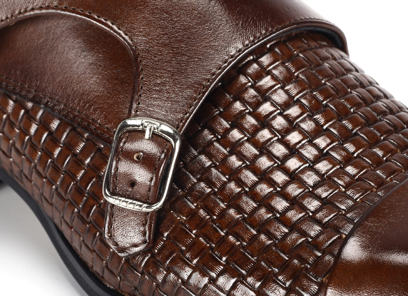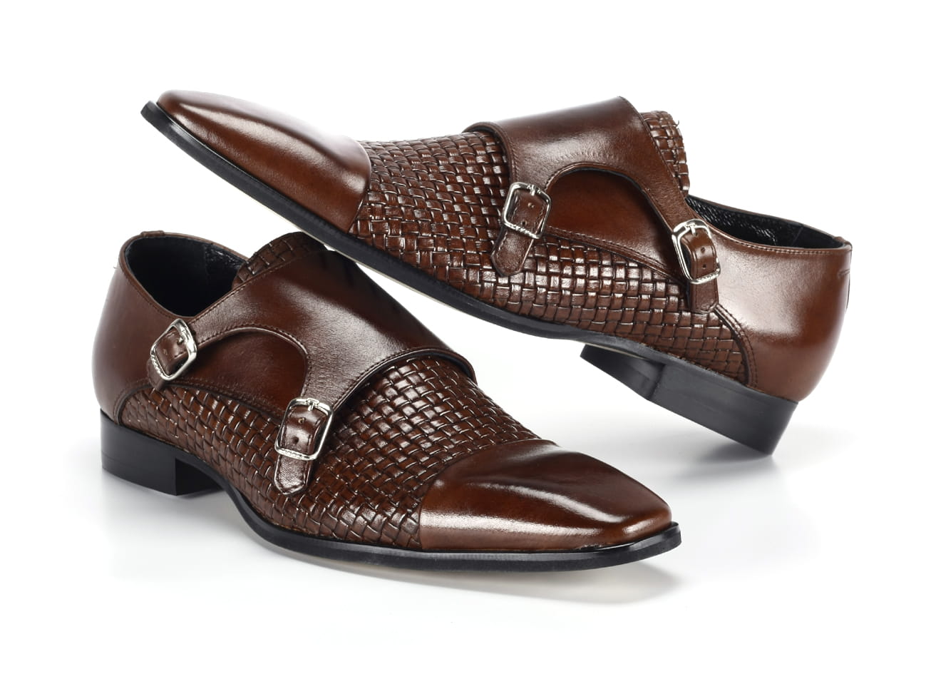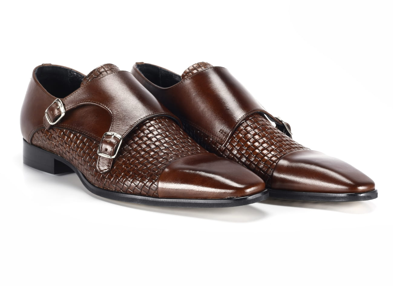 Wizytowe półbuty męskie skórzane brązowe sprzączki wsuwane 39-45 [MODEL: 978-77 Brown]