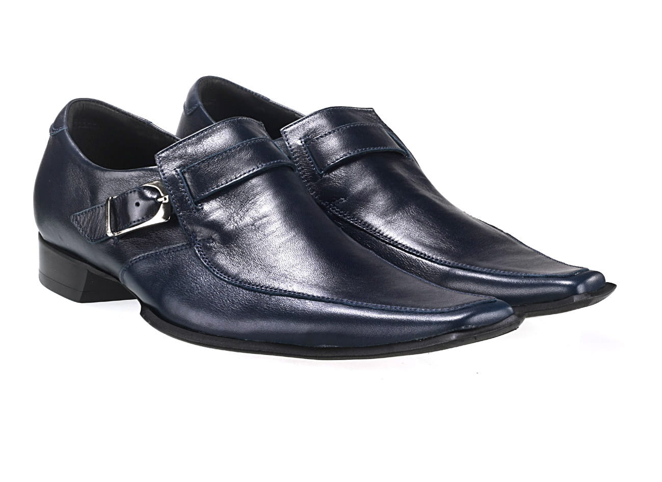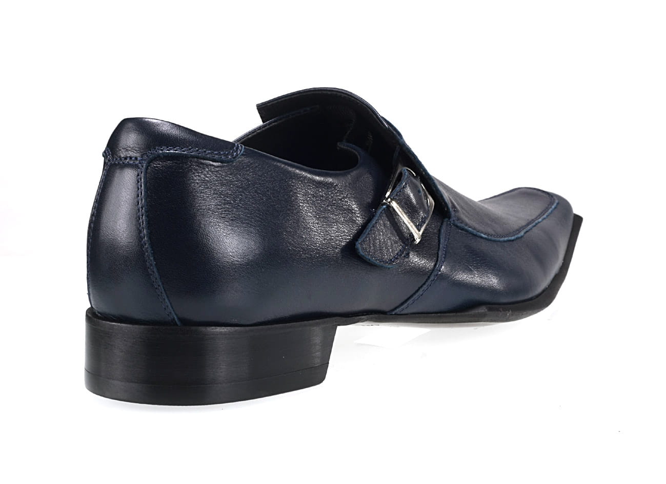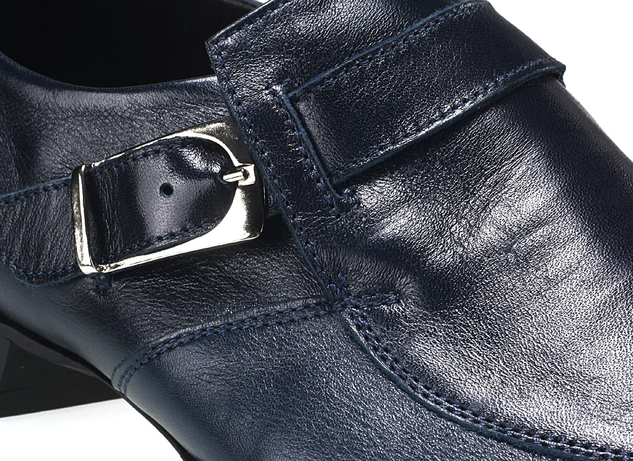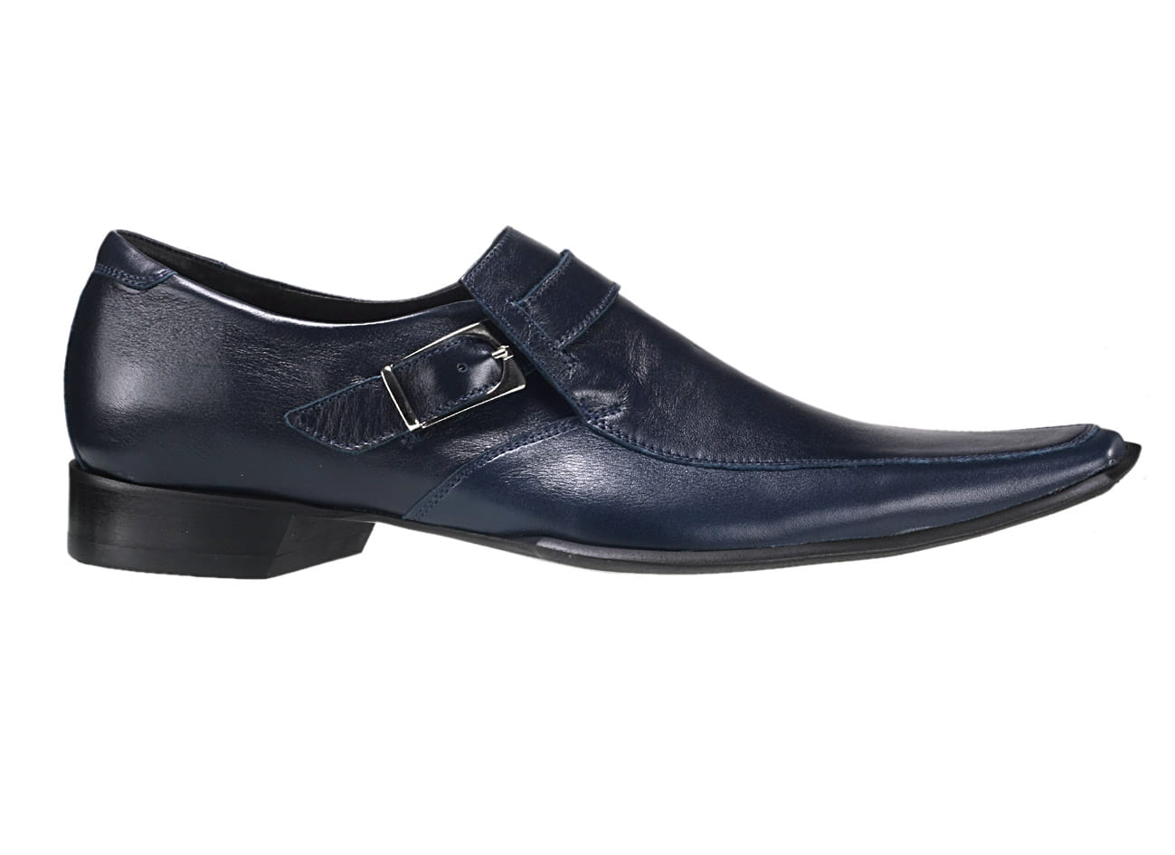 Wizytowe półbuty męskie skórzane granatowe wsuwane sprzączka 38-46 [MODEL: 56791 Blue arcadia]