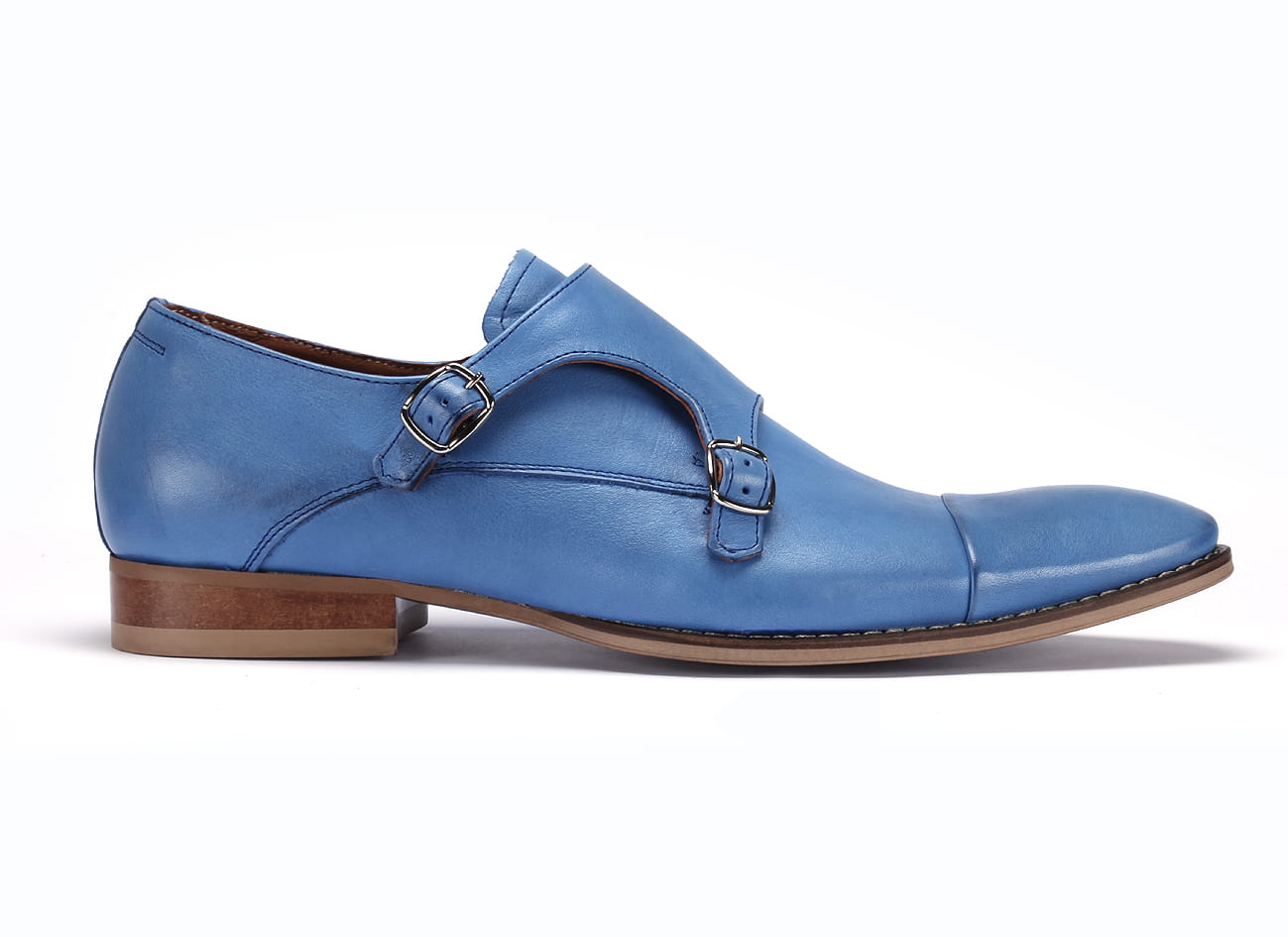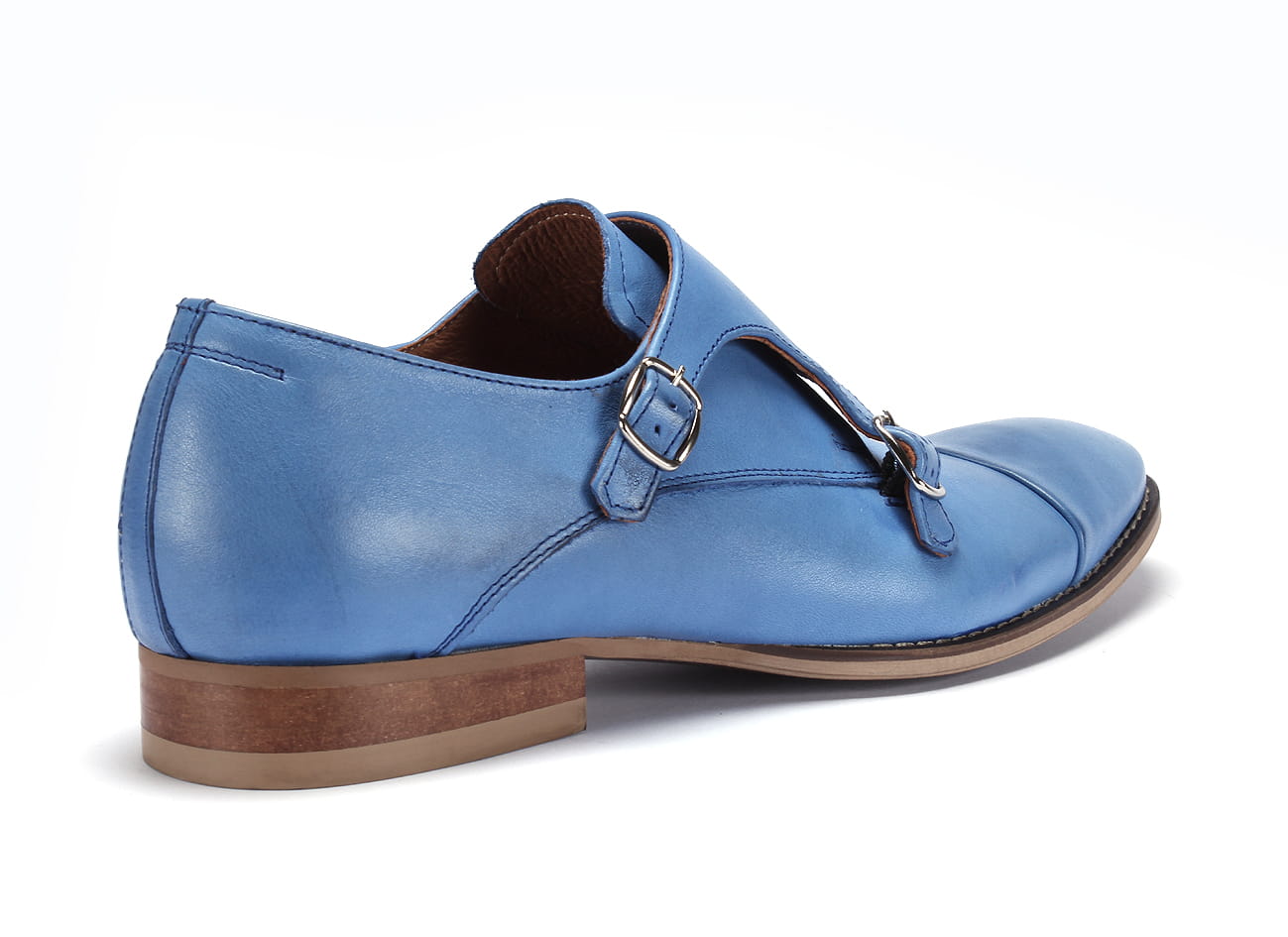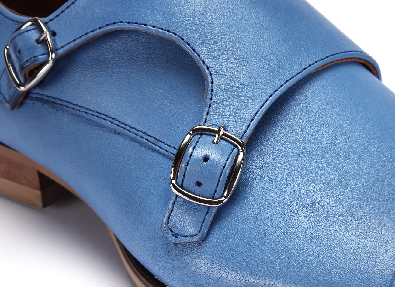 Wizytowe półbuty męskie wsuwane monki man’s shoes blue sprzączki niebieskie skórkowe
