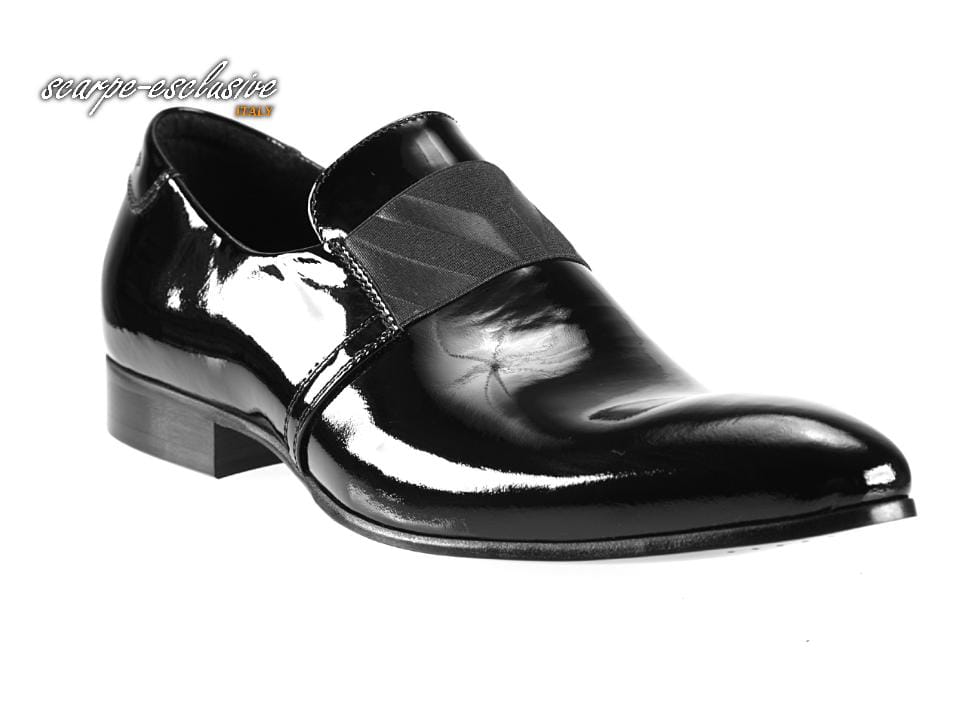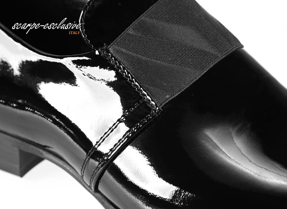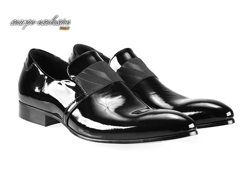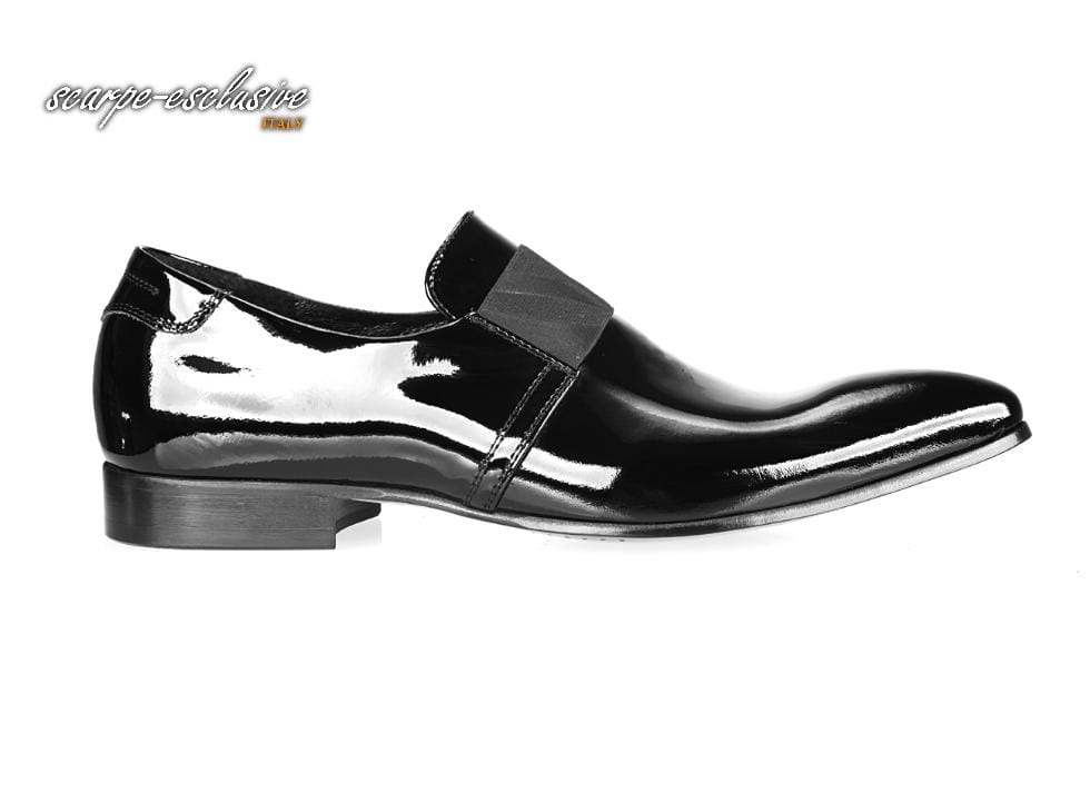 Wizytowe skórzane czarne lakierki wsuwane półbuty męskie [MODEL: 833-01 Nero vernice]