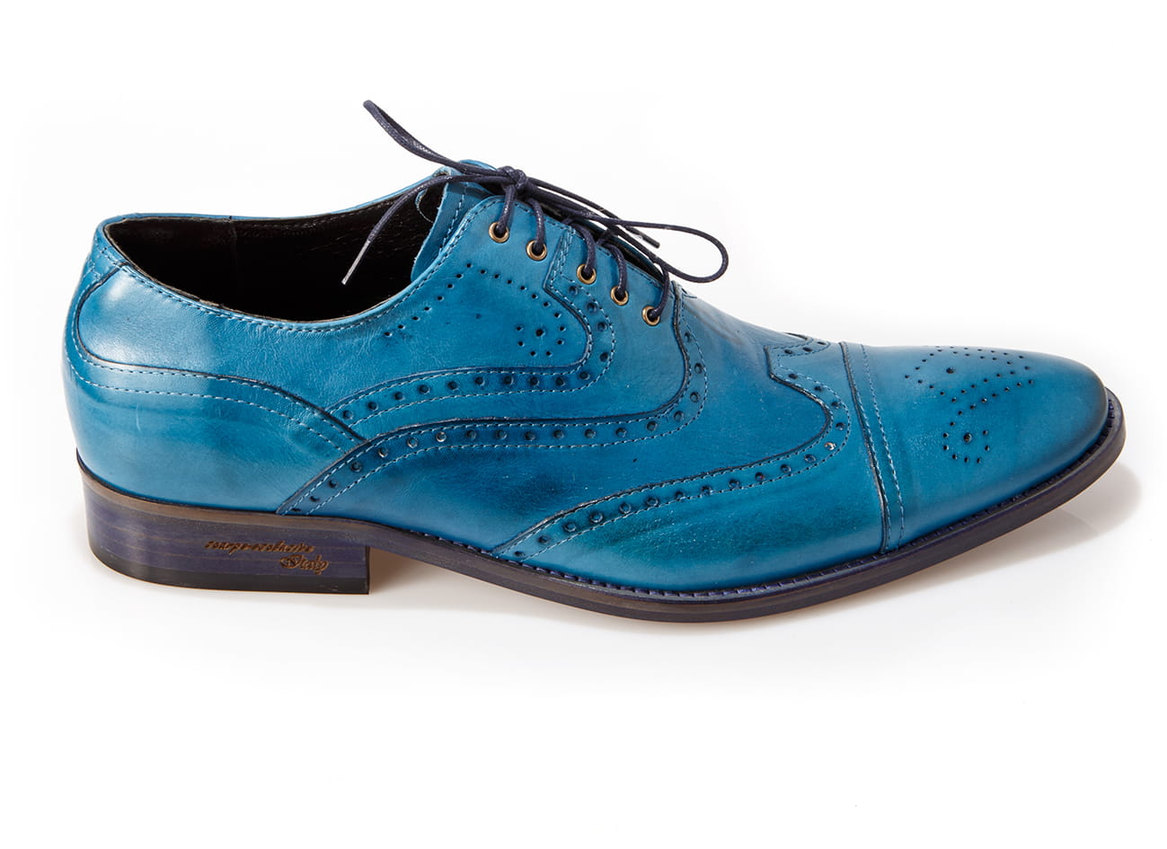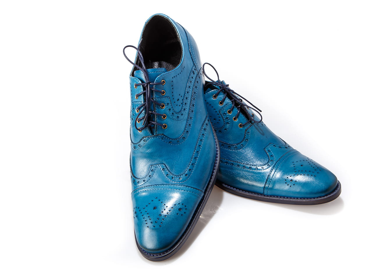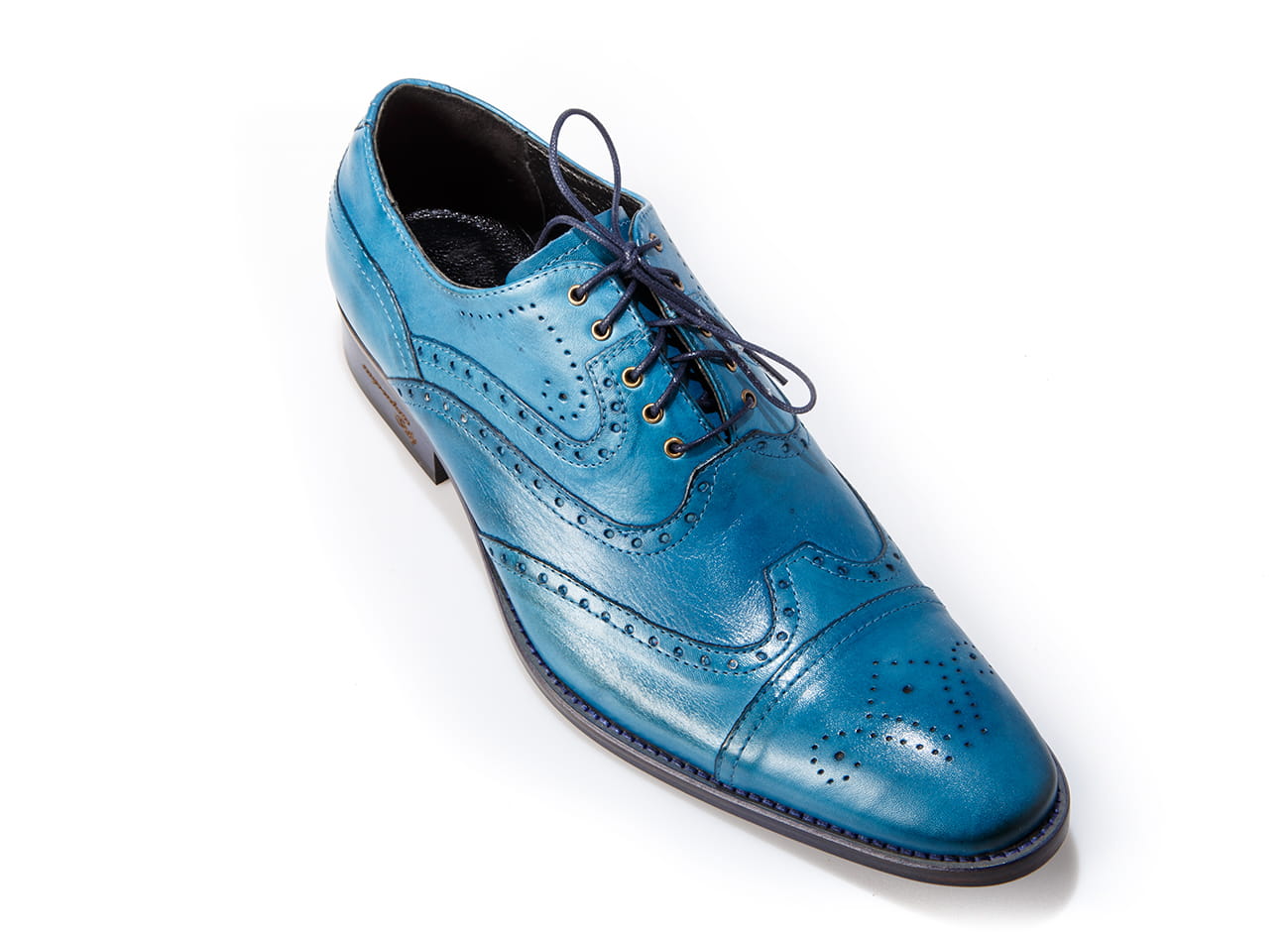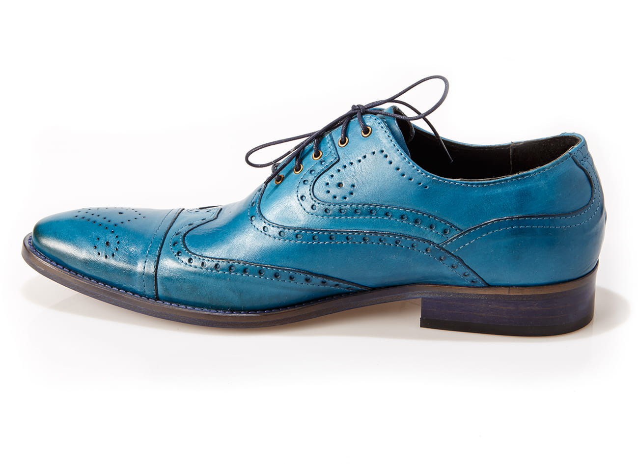 Wizytowe sznurowane szkoty męskie skórzana podeszwa blue niebieskie obuwie męskie wizytowe skórzane półbuty oxford