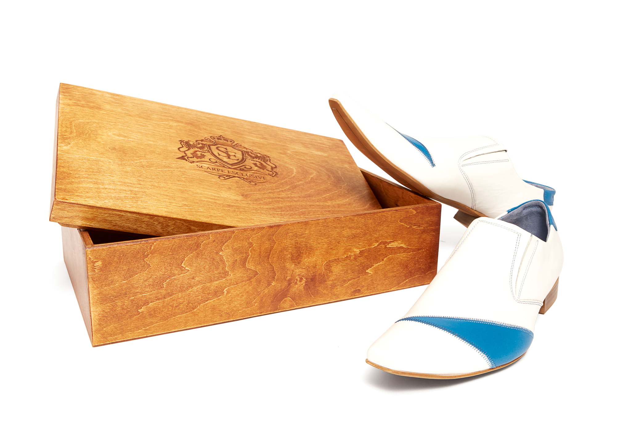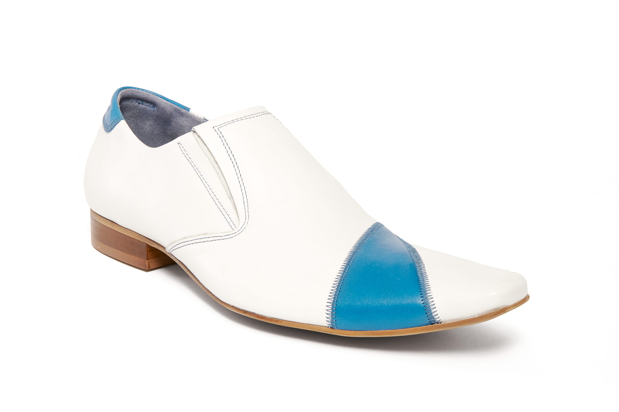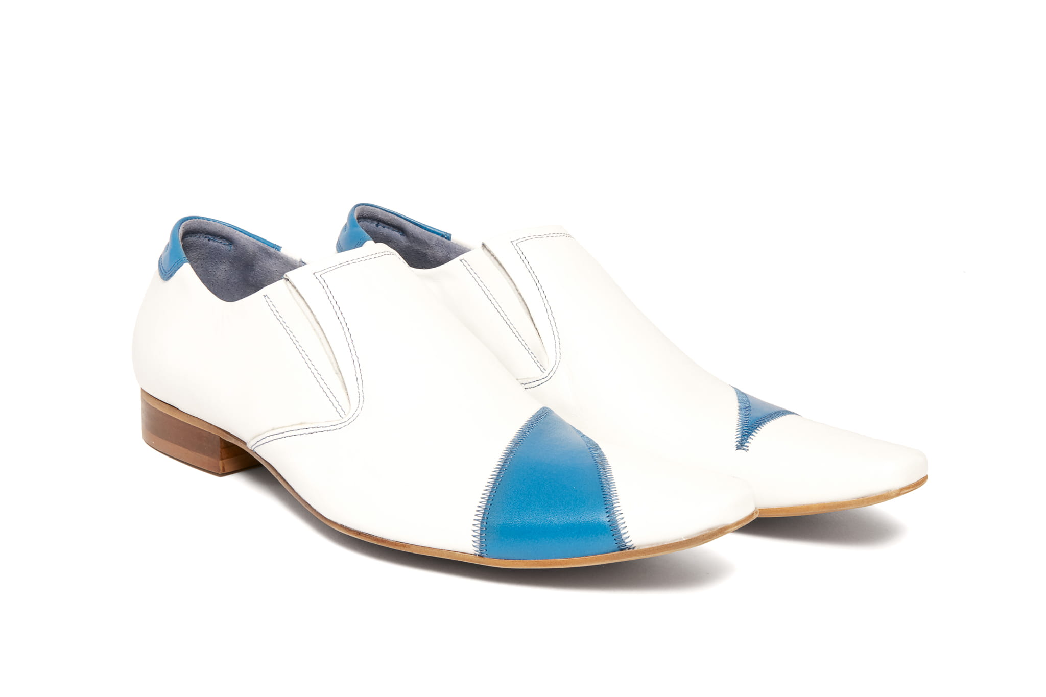 Wizytowe wsuwane skórkowe colorshoes buty półbuty zdobienie białe niebieskie blue obuwie męskie