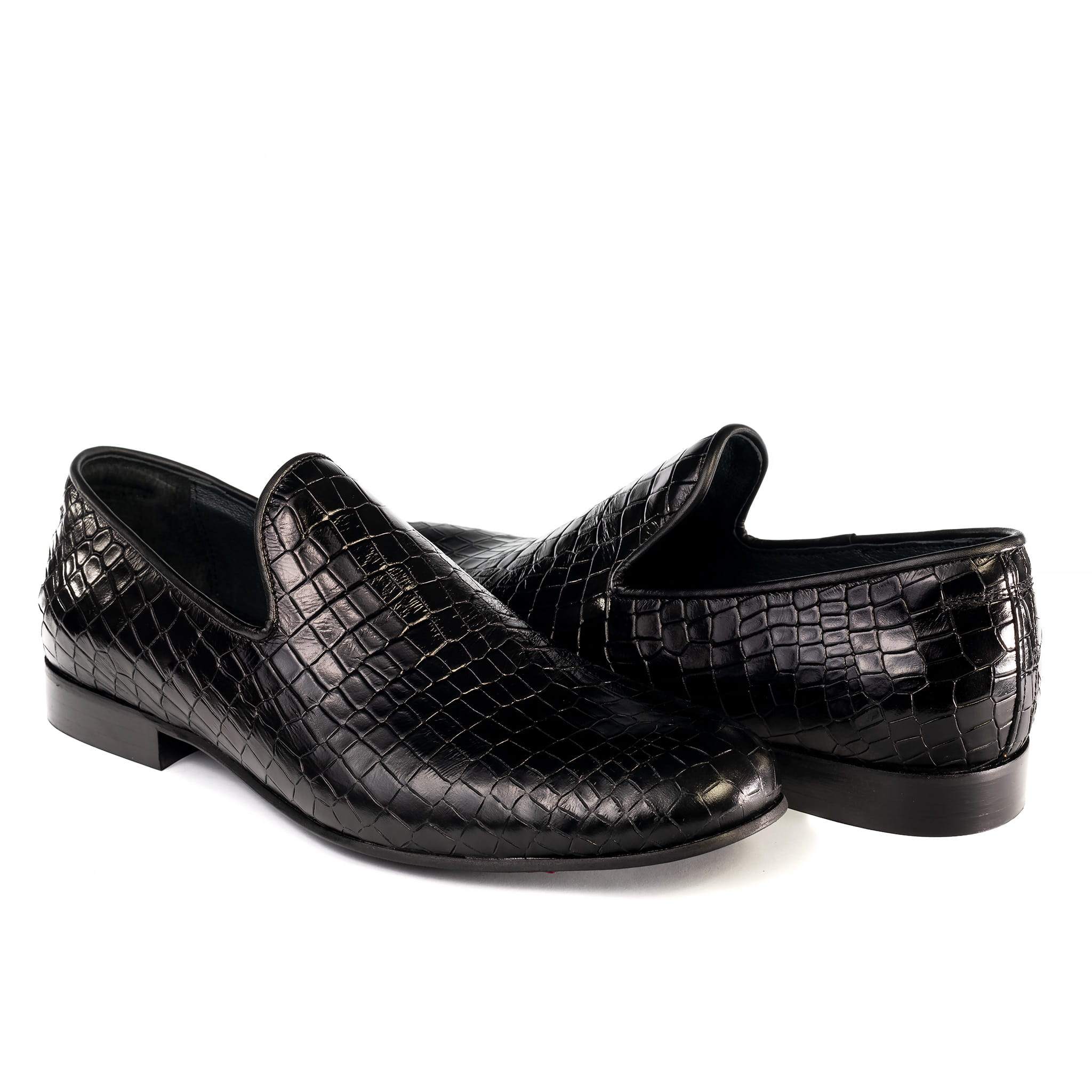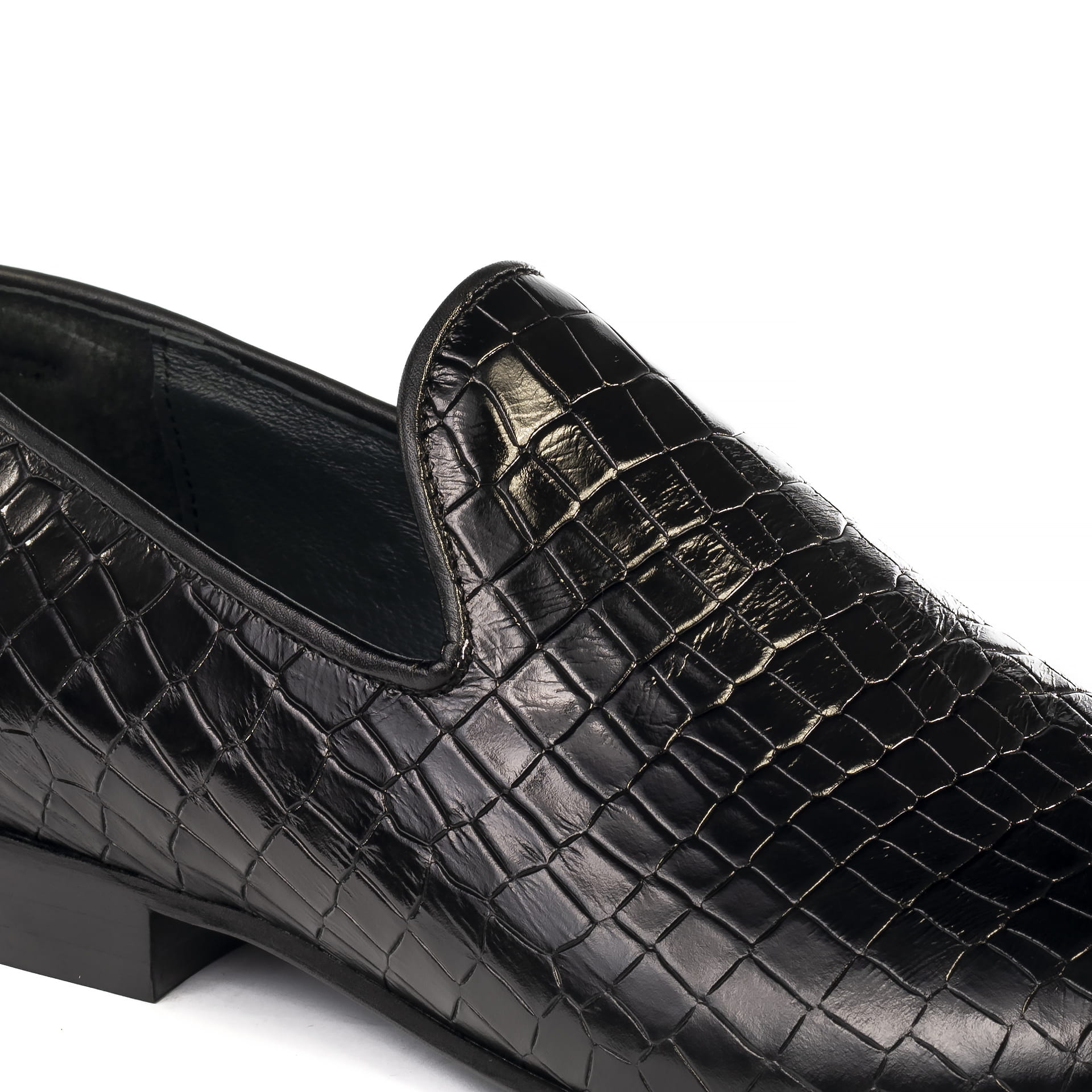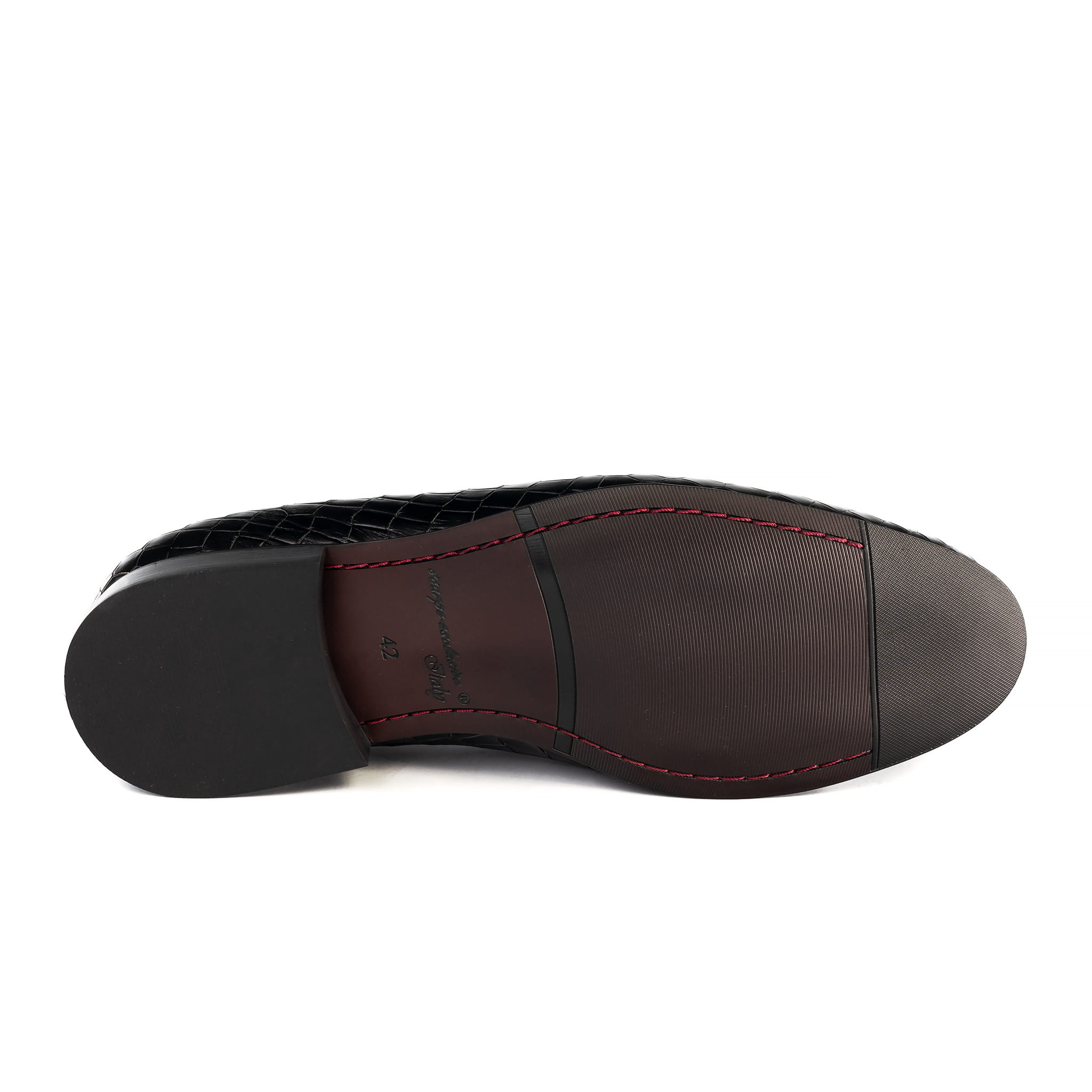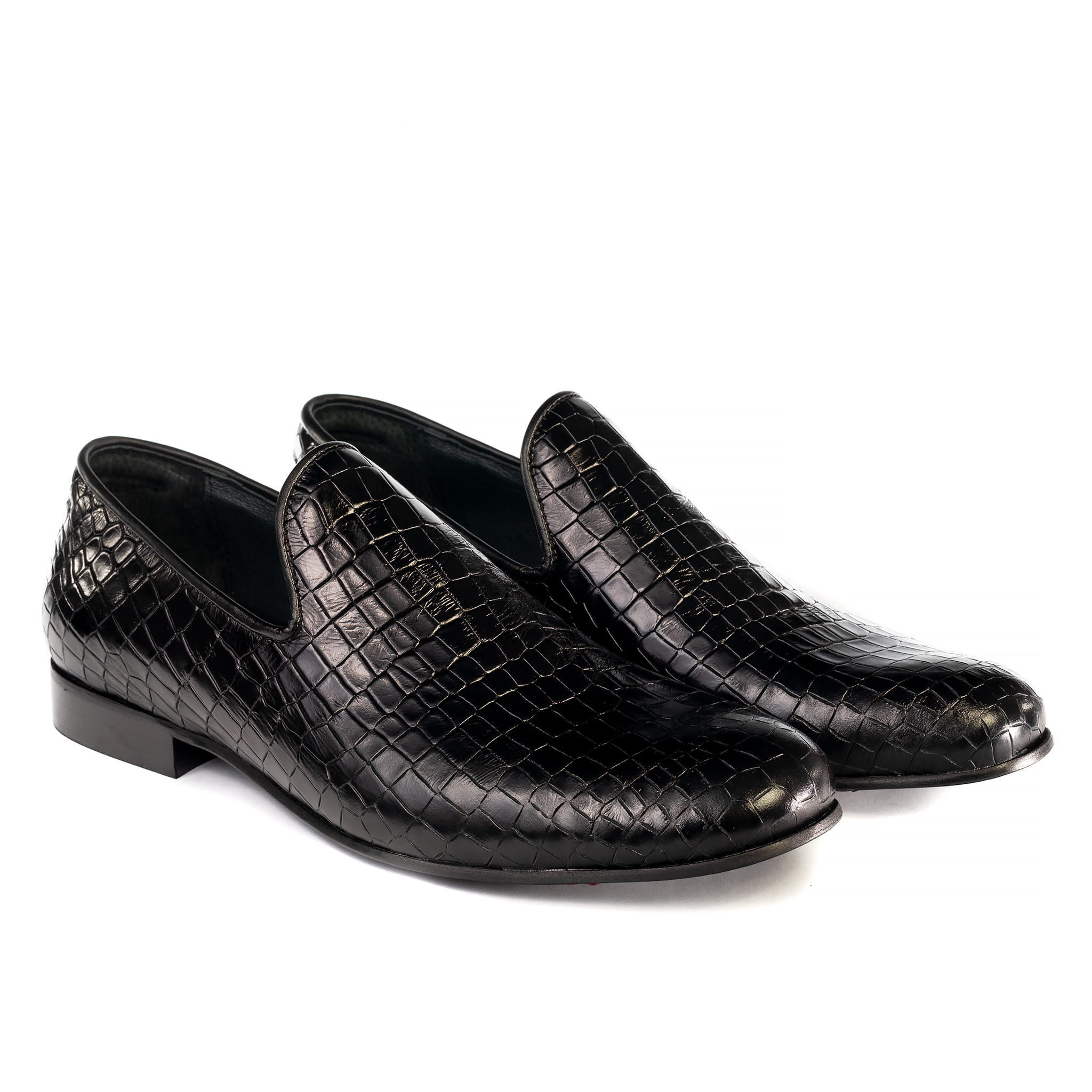 Wizytowe wsuwane skórzane półbuty czarne lordsy mokasyny [MODEL: 1121-01 nero cayman denver]