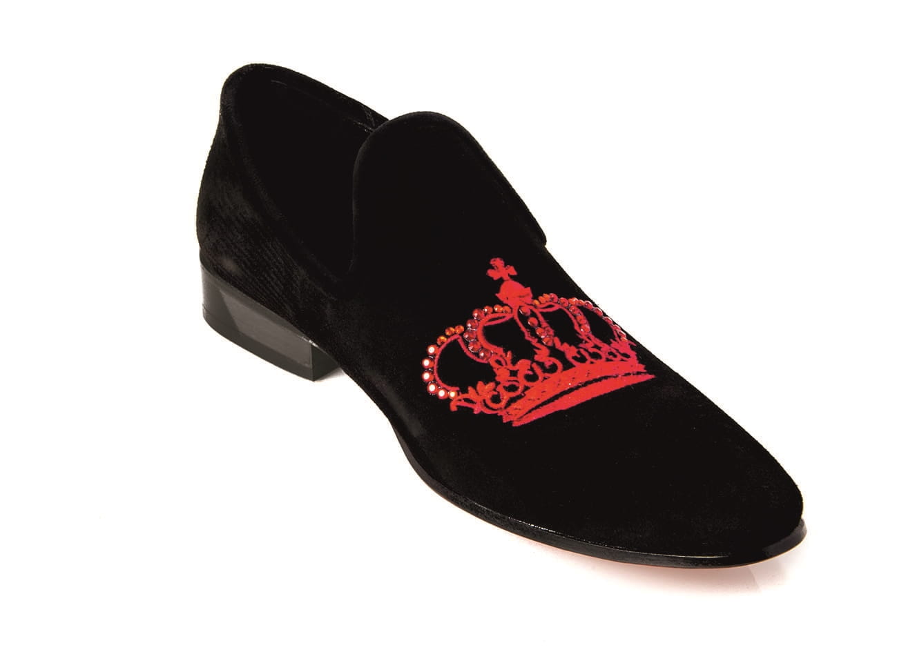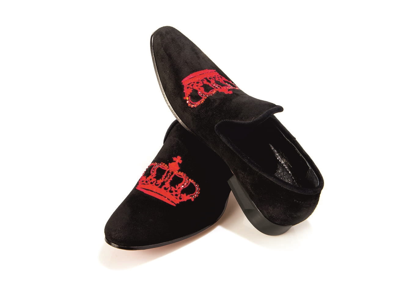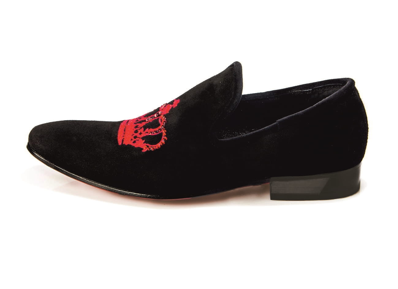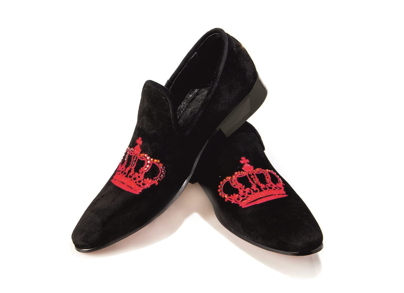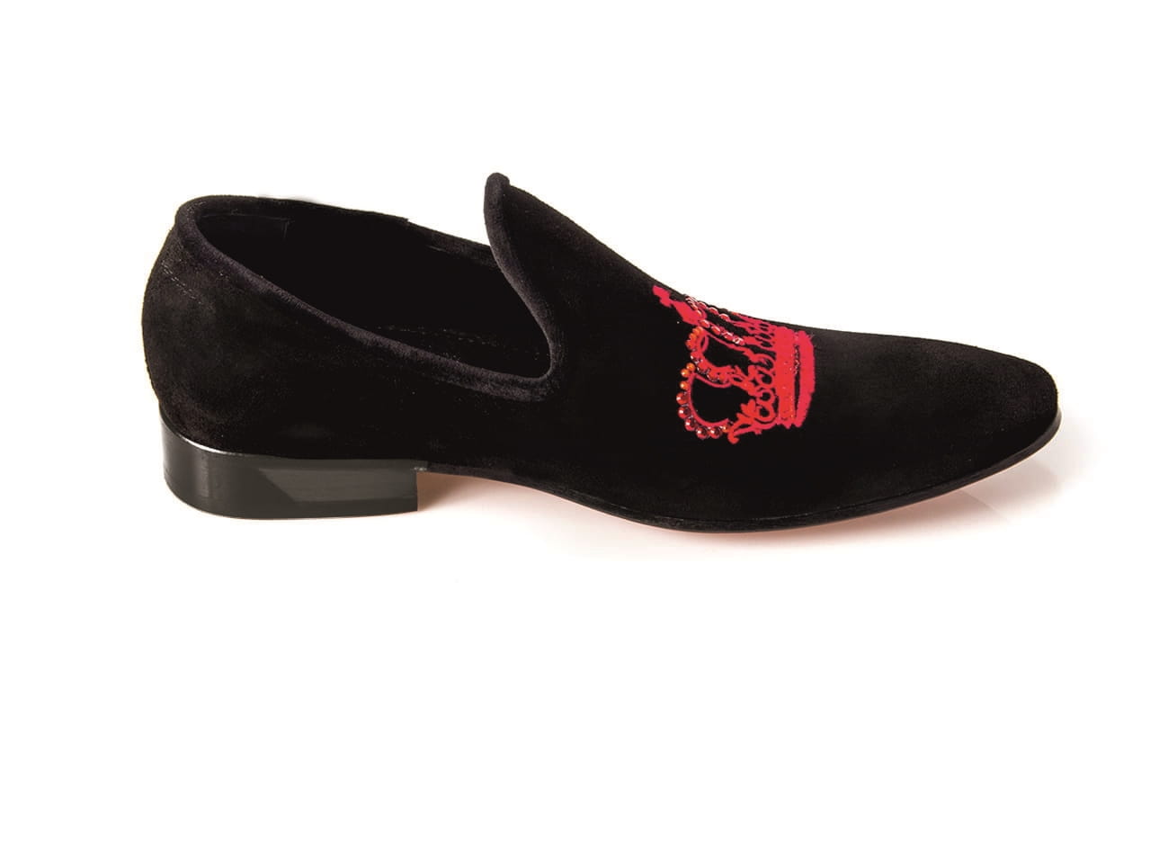 Zapytaj o Włoskie buty skórzane lordsy wsuwane aksamit zamszowe hafty [MODEL: 1217-01 Nero korona]