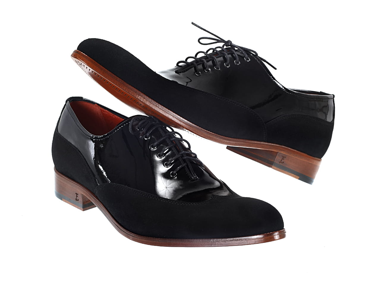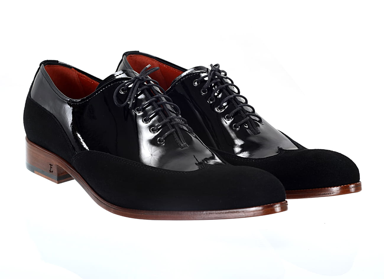 Zapytaj o Włoskie ekskluzywne wizytowe półbuty męskie [MODEL 929-01 Nero vernice/camoscio]