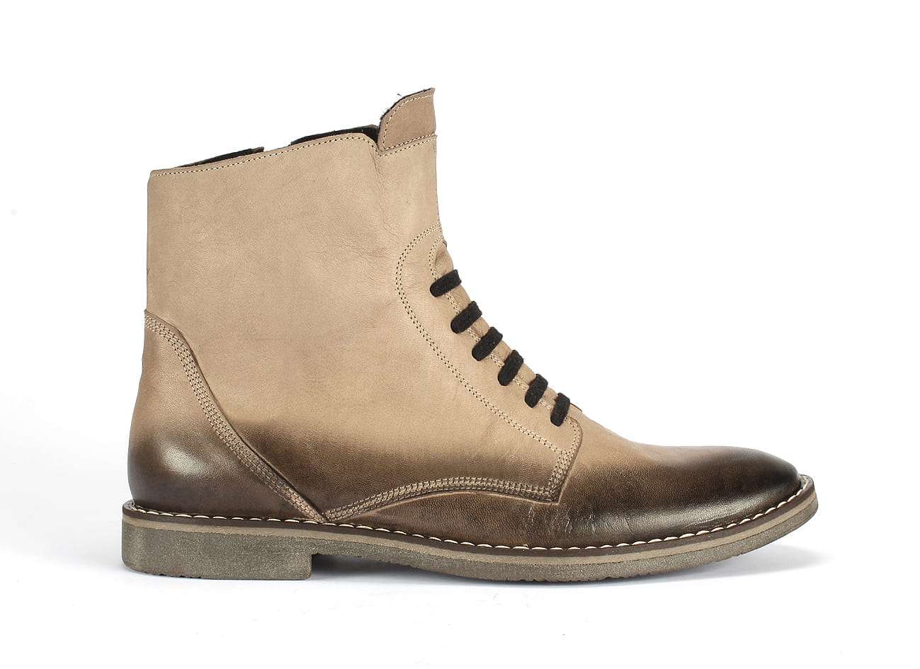 Włoskie glany old beżowe skórkowe wysokie półbuty męskie trzewiki botki zamek