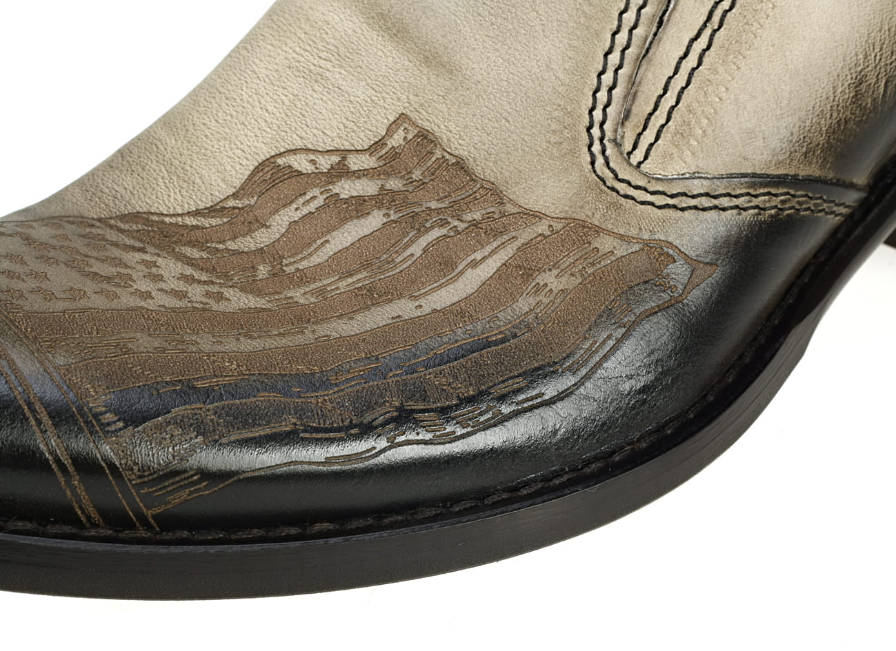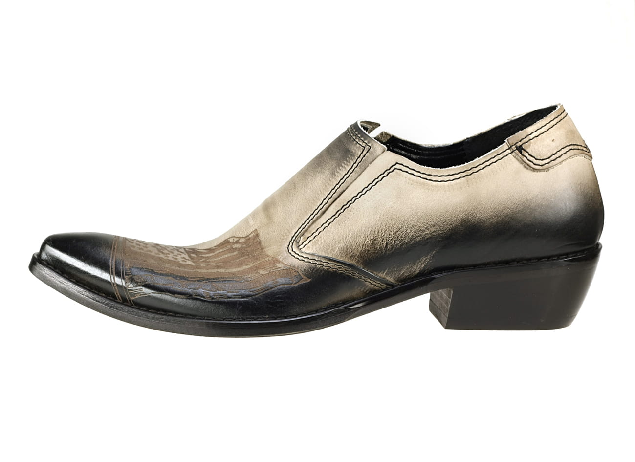 Włoskie kowbojki męskie cowboy boots niskie skórzane czarne beżowe półbuty buty męskie wsuwane podwyższany obcas flaga