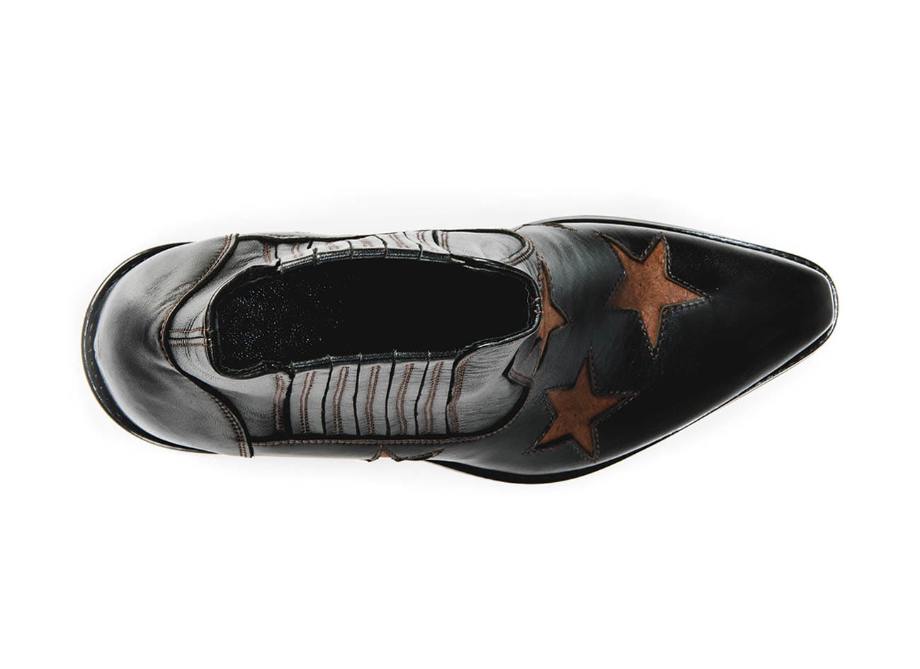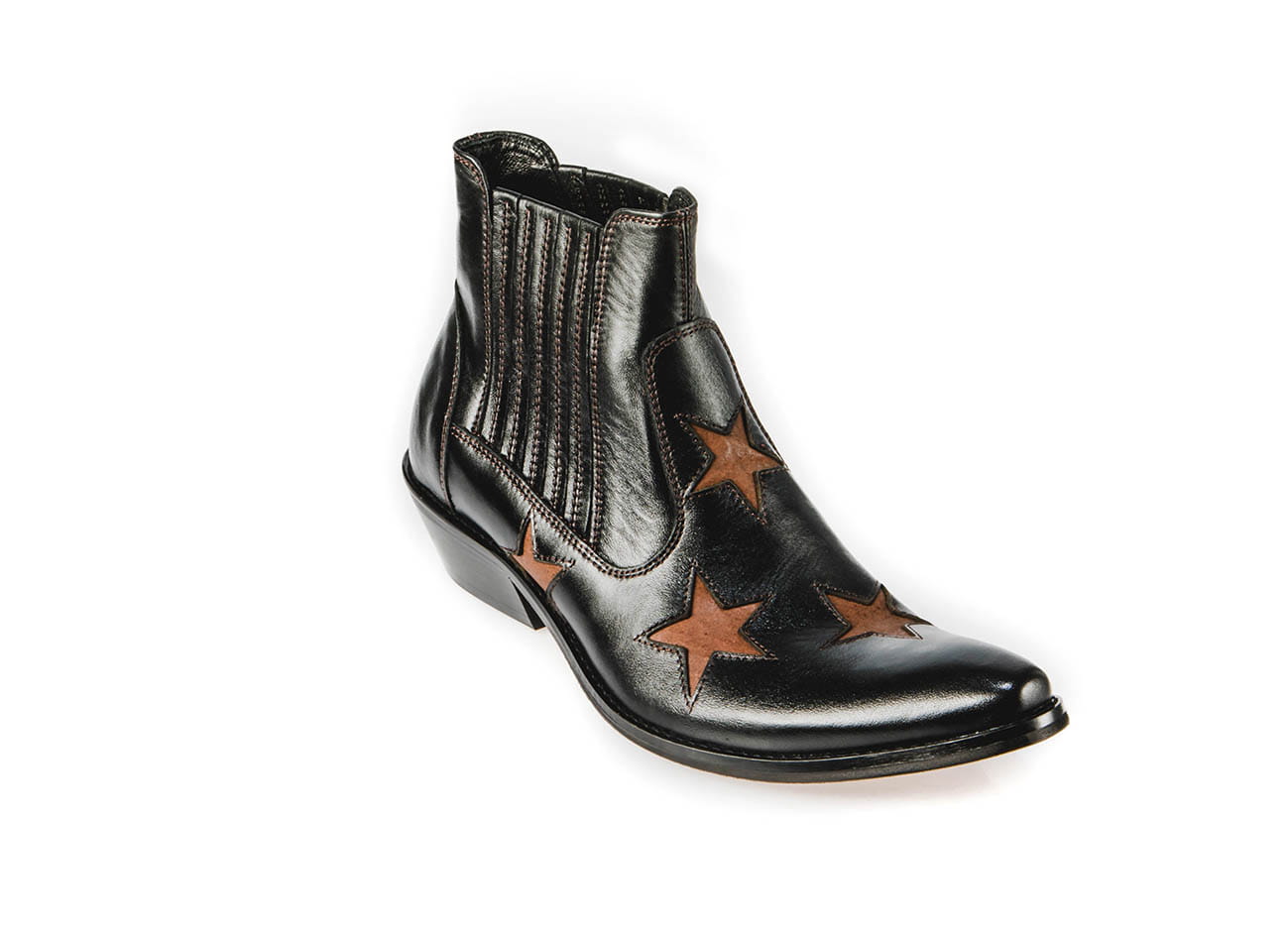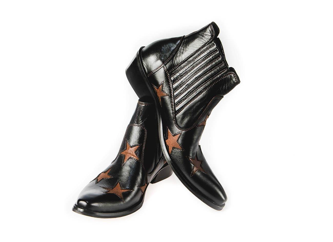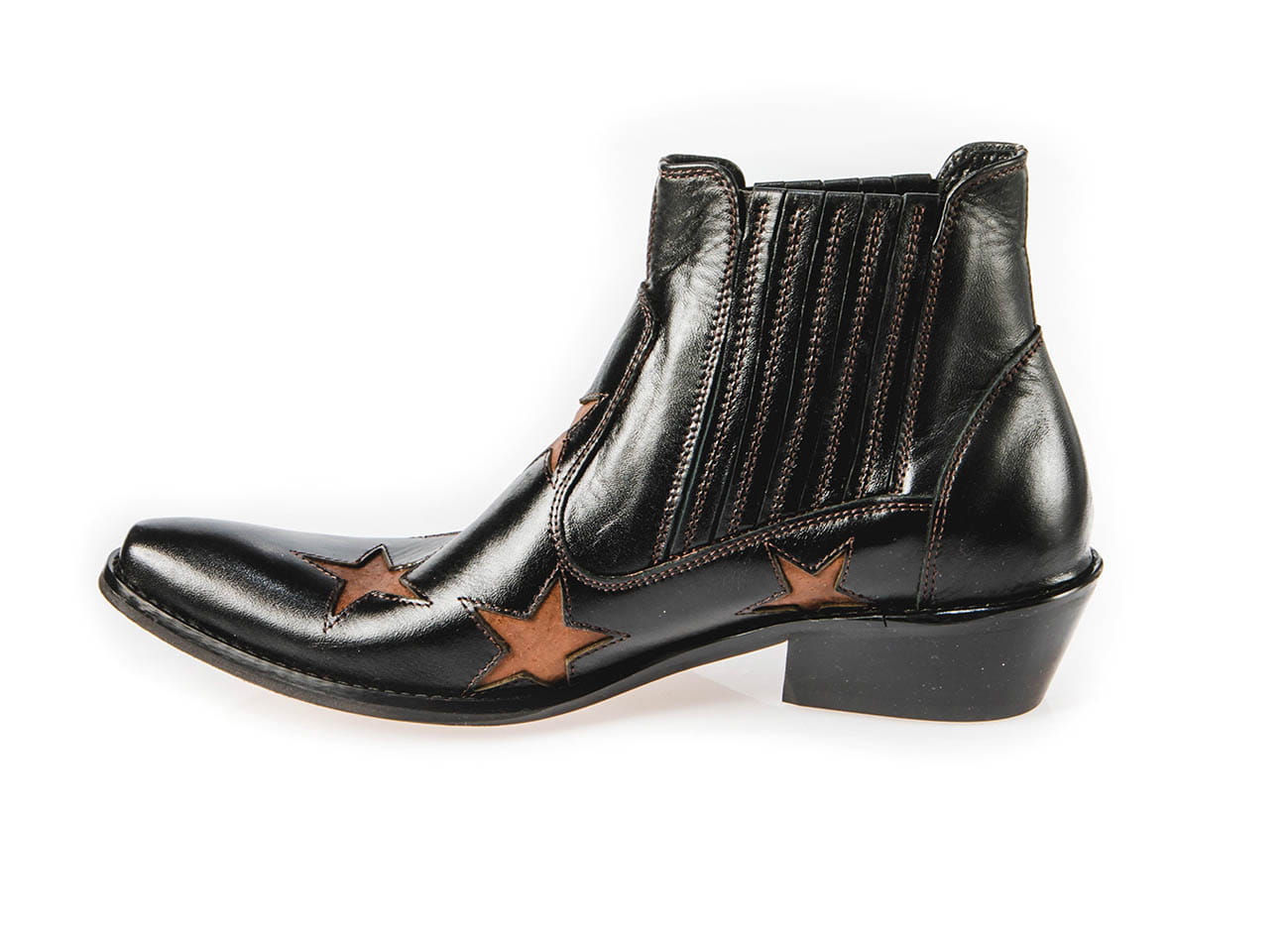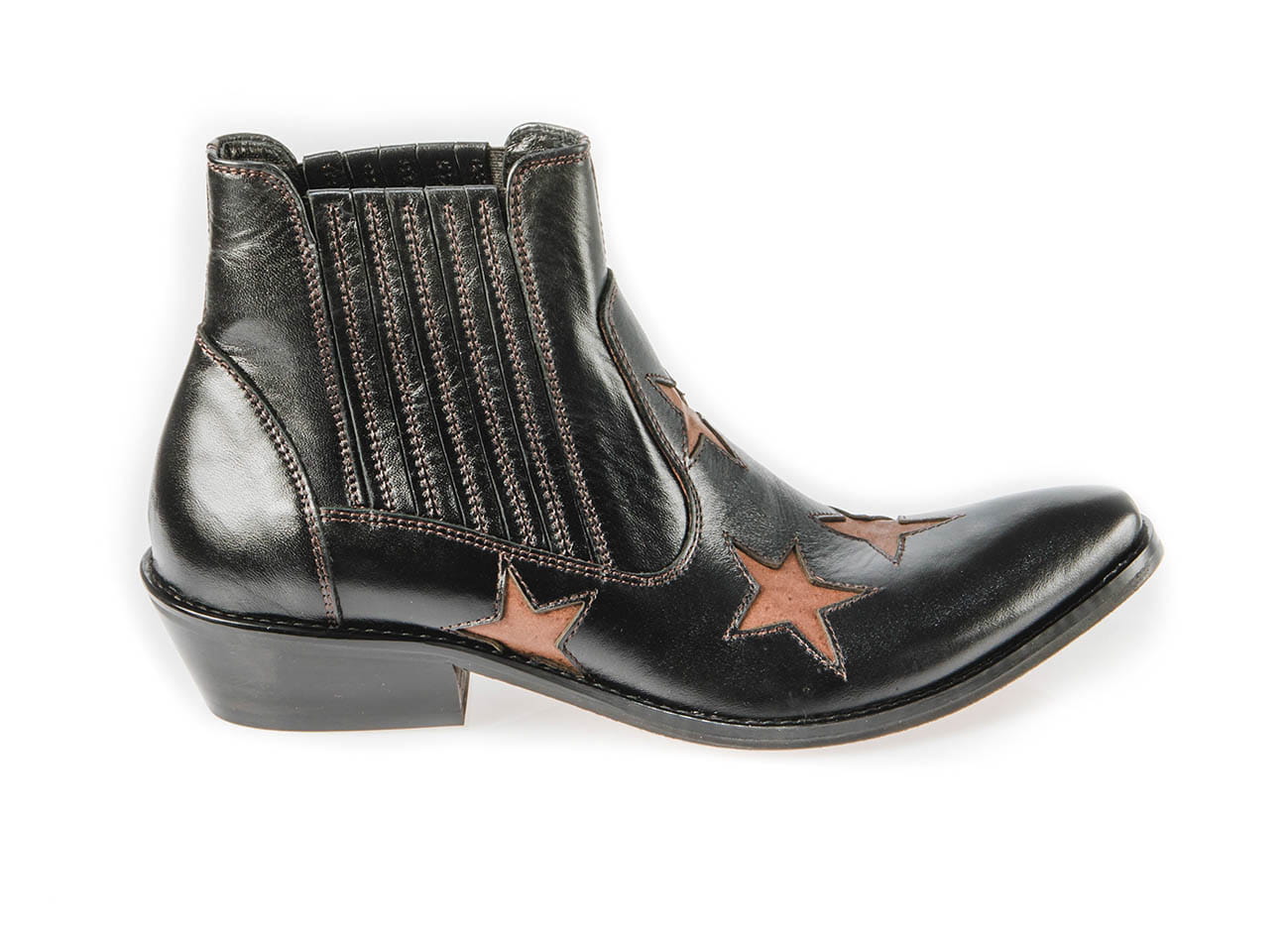 Model wsuwany z gumką po bokach zapewniającą wygodne ubieranie i dopasowanie do stopy. Całkowita długość cholewy wraz z obcasem to 17 cm, a jej szerokość u samej góry to 13 cm. Obuwie wykonane ze skóry naturalnej bydlęcej.