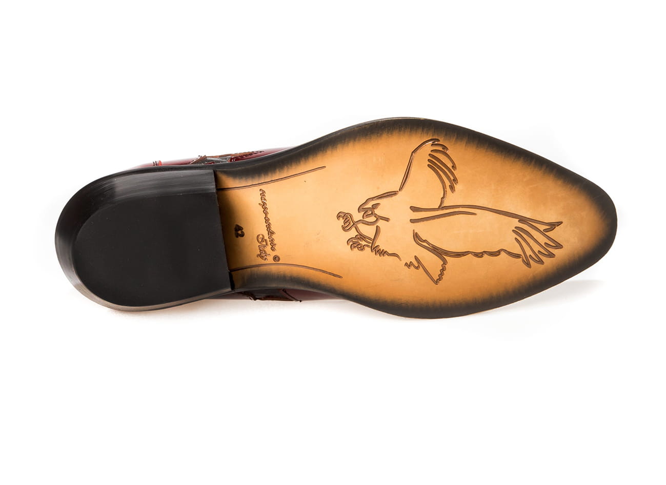 Pogrubiona podeszwa, przeszyta kiedra spodu, zadarty do góry nosek, obszyta skórą guma itd. gwarantują niepowtarzalną jakość .