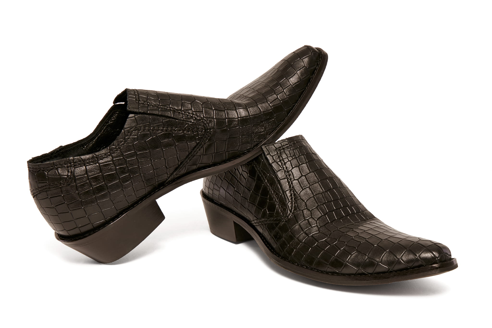 Włoskie kowbojki męskie wsuwane imitacja węża czarne skórzane [MODEL: 812-01 Nero]