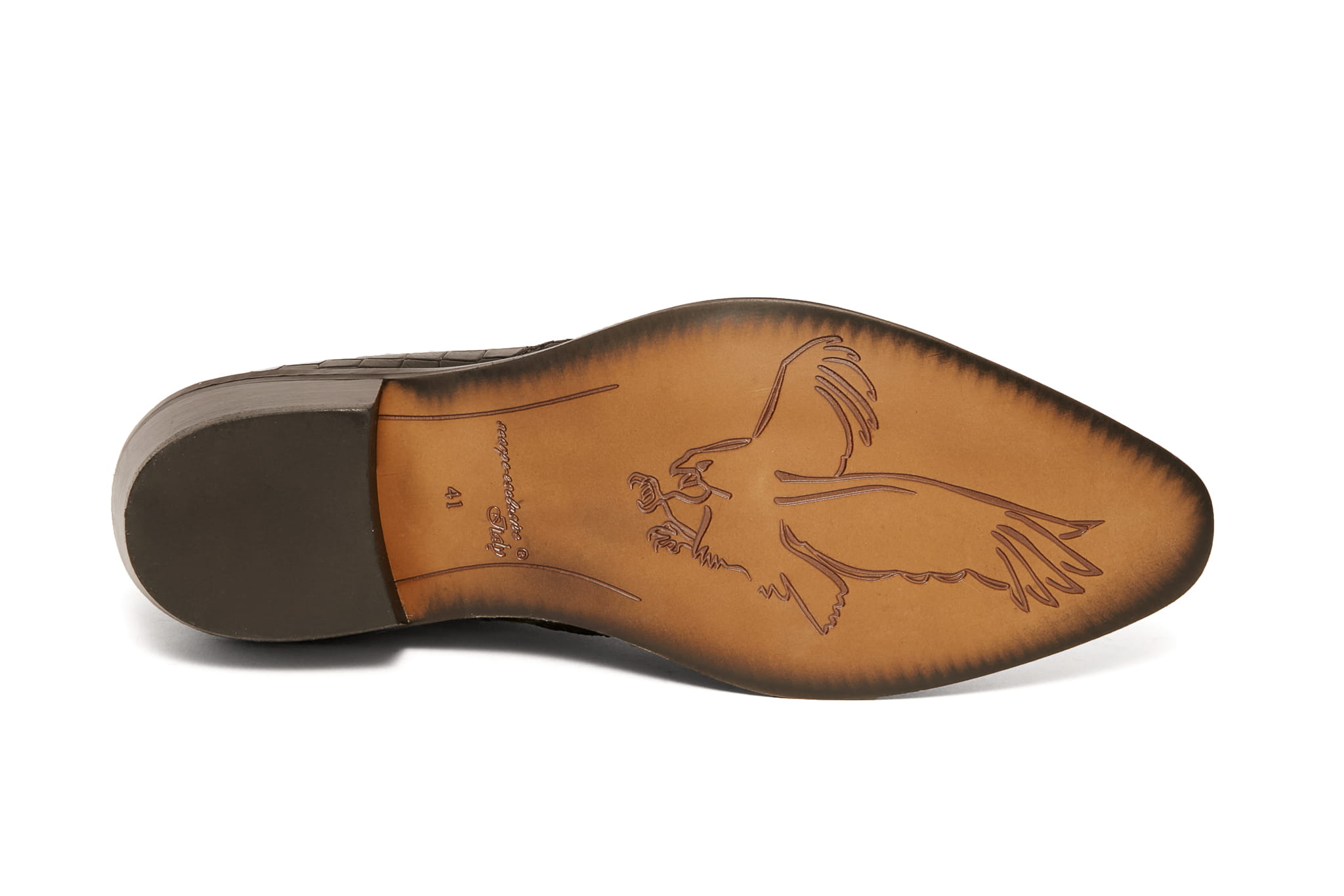 Model wykonany ze skóry bydlęcej z wytłoczeniami.