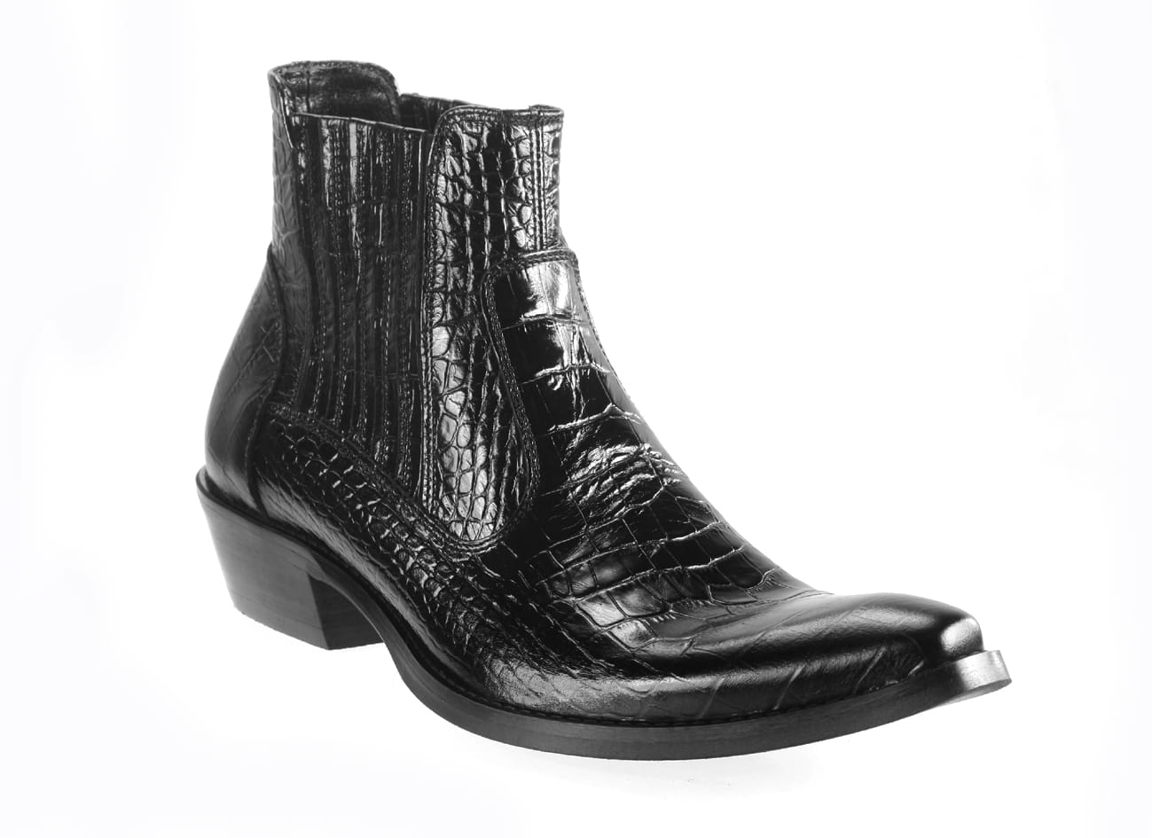 Zapytaj o Włoskie kowbojki męskie wsuwane wysokie imitacja skóry węża 38-46 [MODEL: 810-01 Cayman nero]