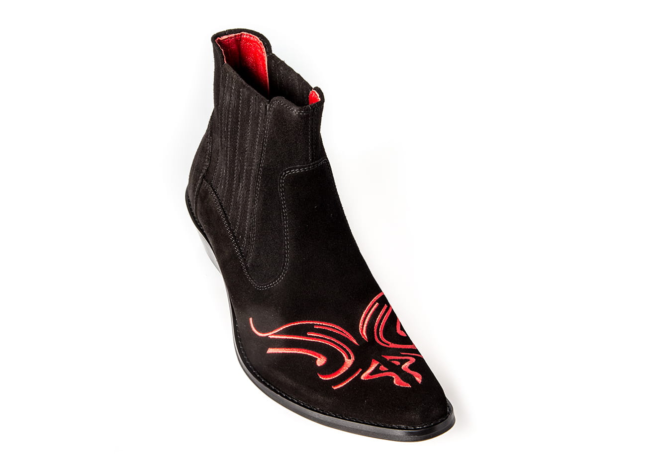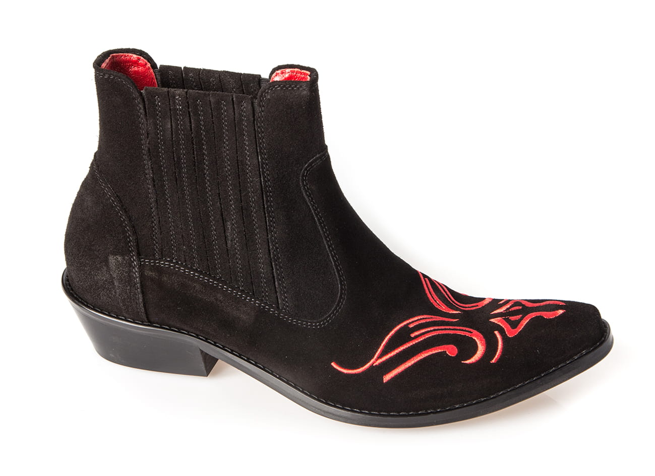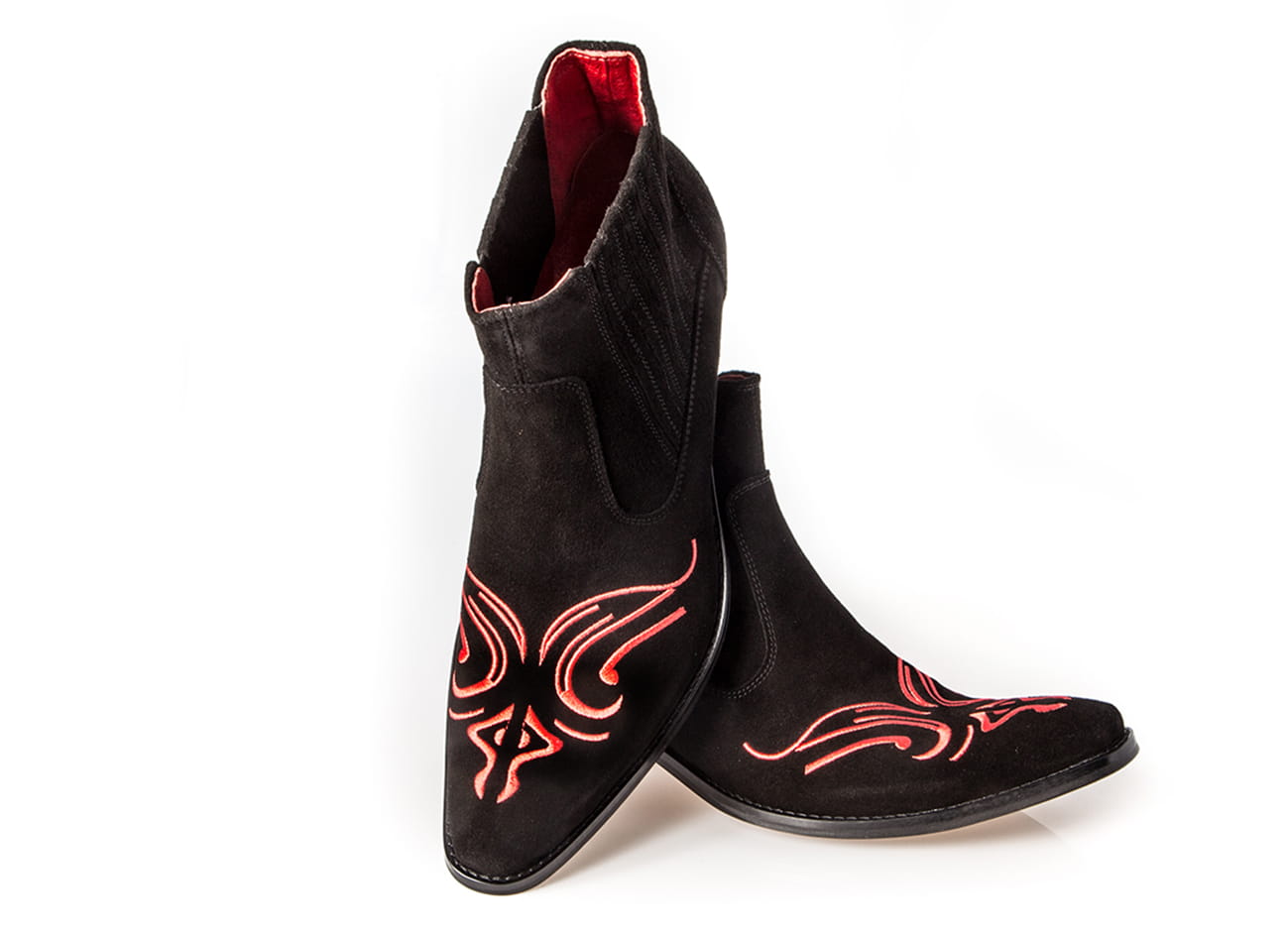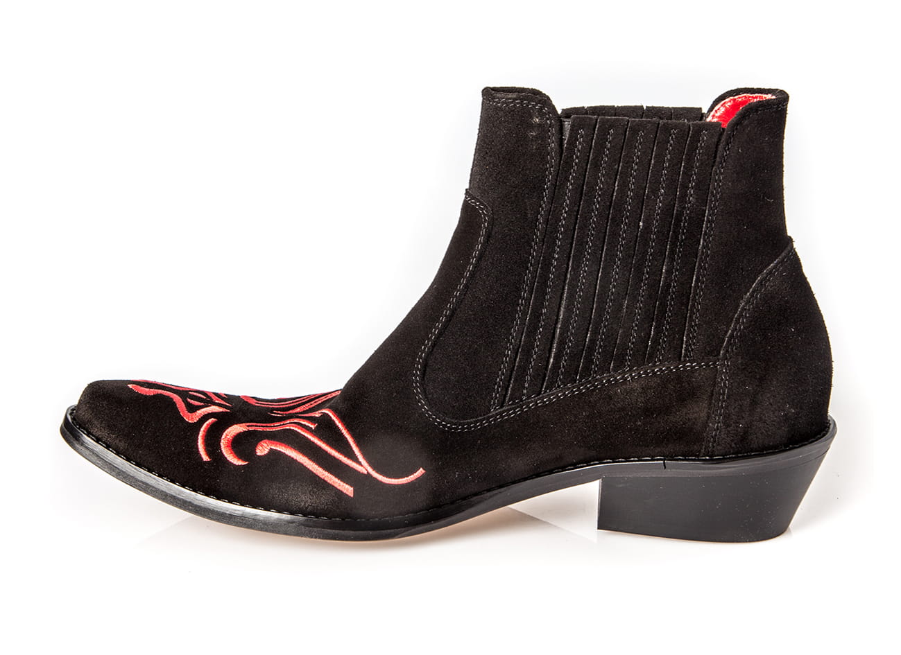 Włoskie kowbojki czarne skórzane zamszowe botki męskie buty na motor haft czerwone