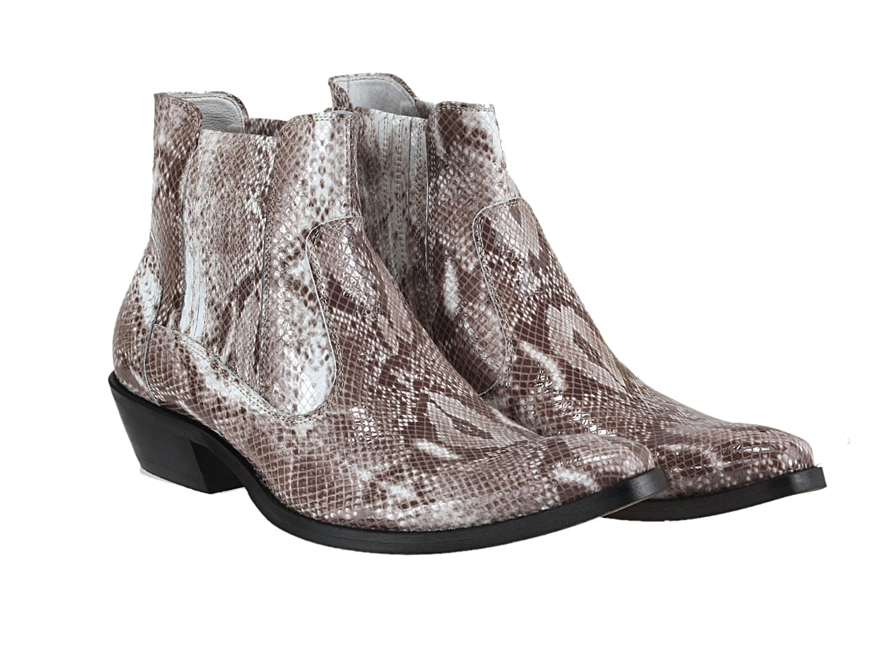 Włoskie kowbojki wysokie skórzane beżowe brązowe wytłaczane imitacja skóry węża wysokie obuwie męskie