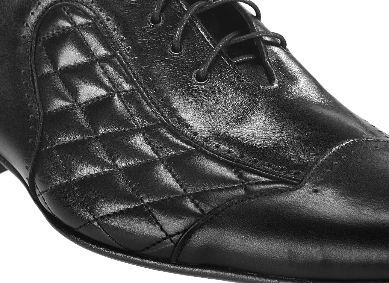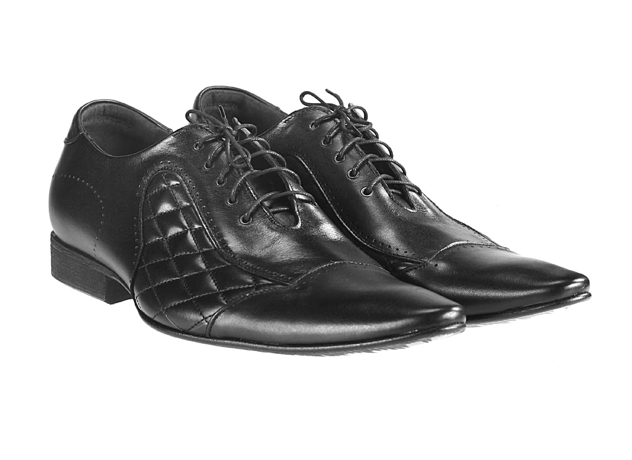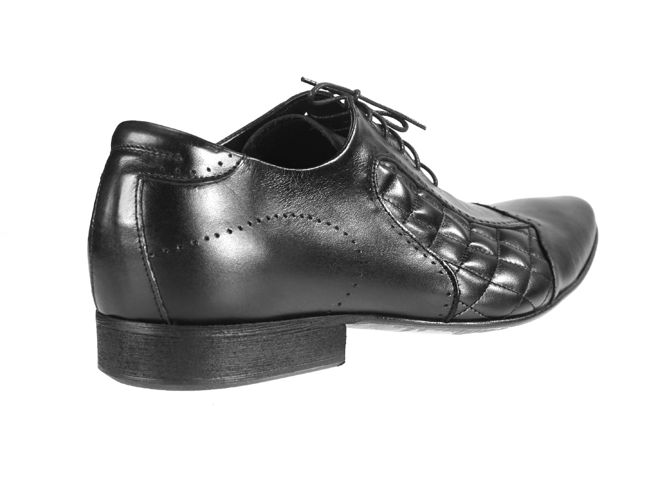 Włoskie obuwie męskie czarne sznurowane skórkowe czarne pikowane wizytowe półbuty