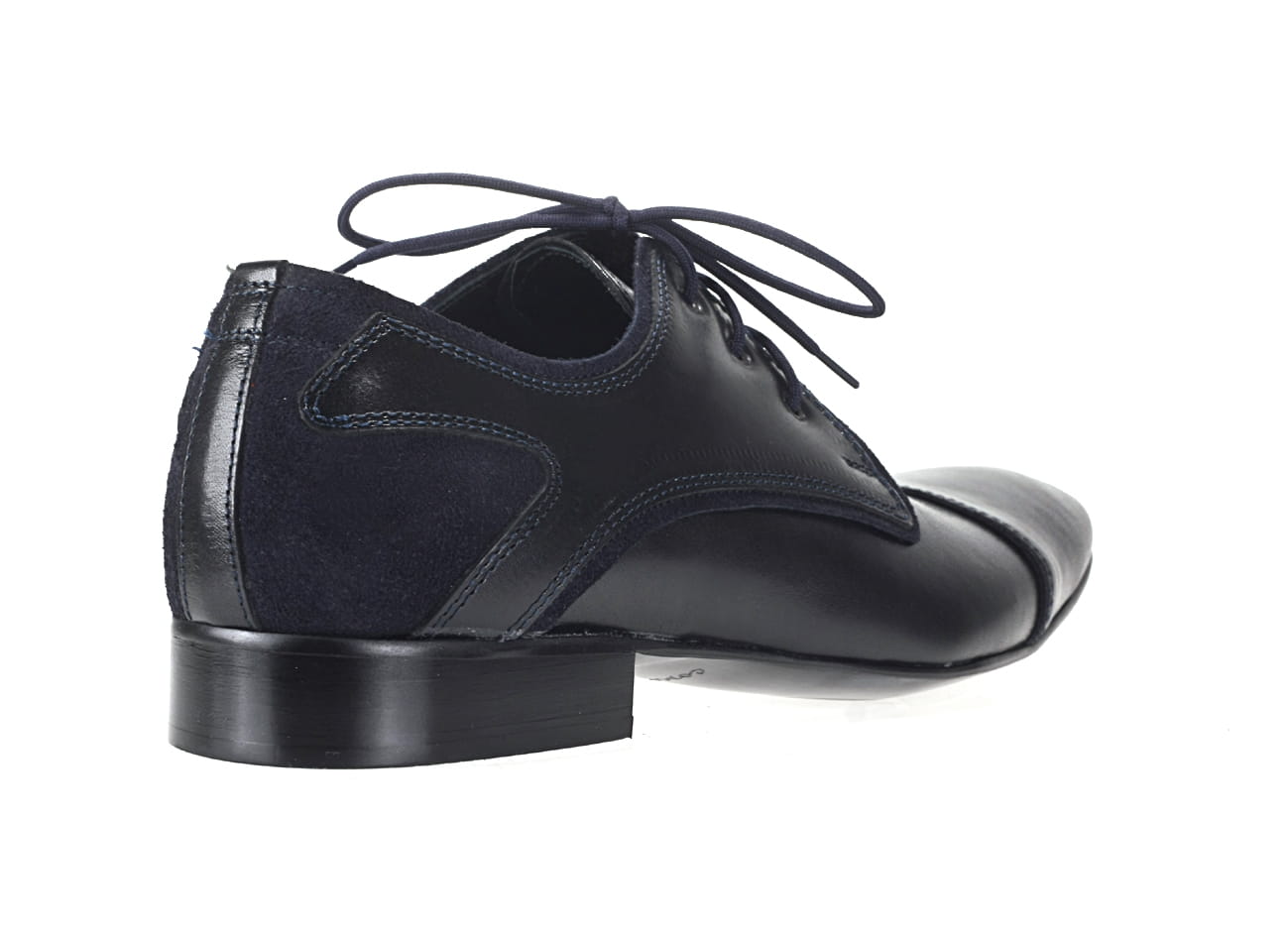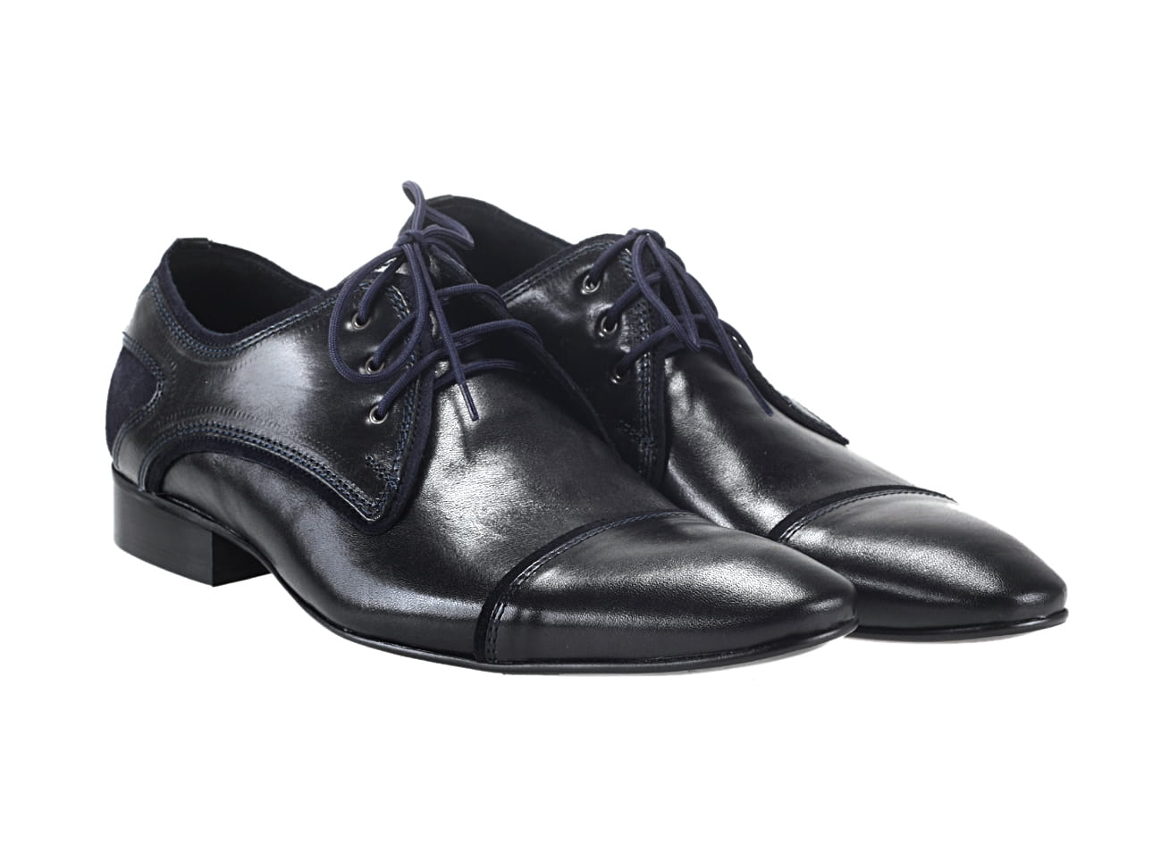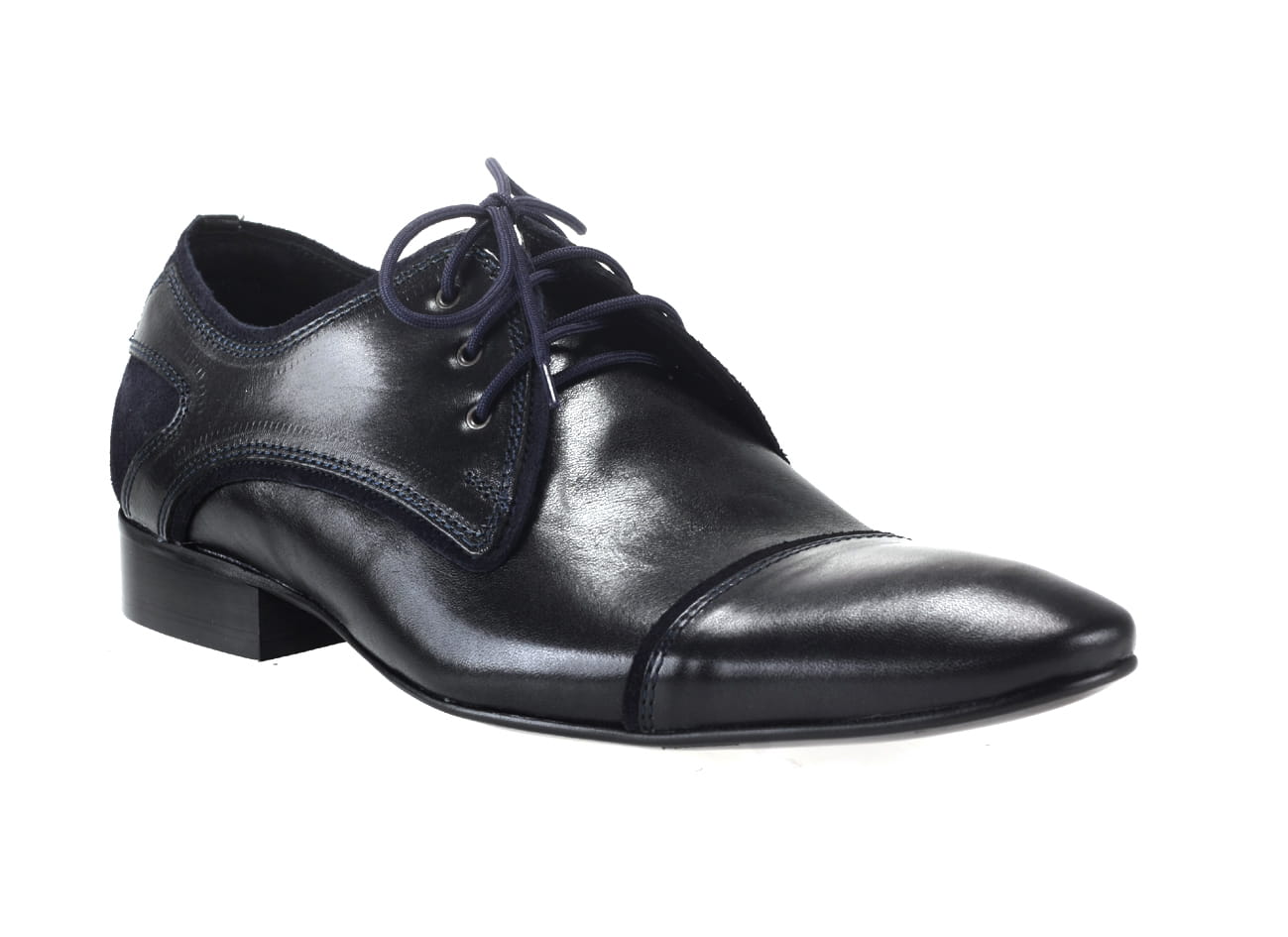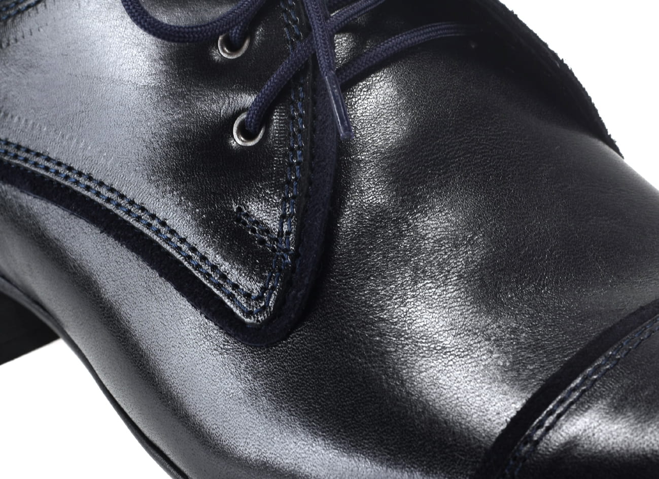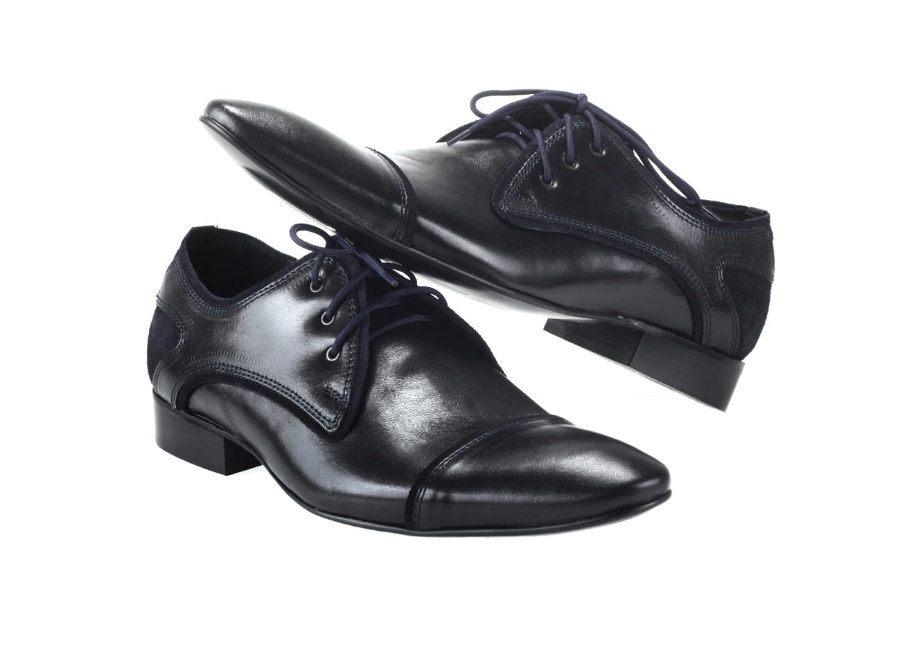 Włoskie półbuty męskie wizytowe sznurowane skórzane granatowe [MODEL: 938-01-91 Nero euro/blue camoscio]