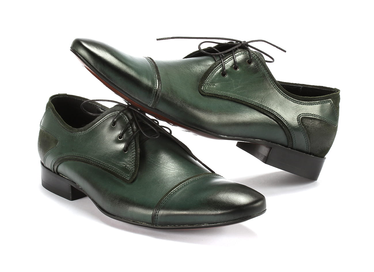 Włoskie obuwie wizytowe półbuty męskie buty Kraków zielone buty kolorowe skórzane sznurowane buty dla celebrytów