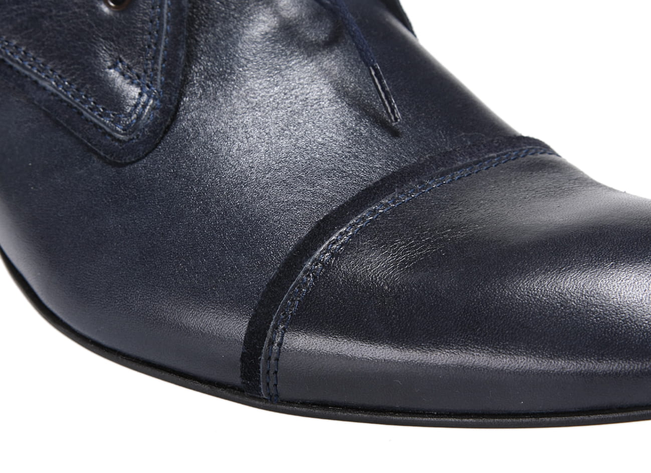 Włoskie półbuty wizytowe sznurowane granatowe niebieskie skórzane wiedenki oxford derby brogsy [MODEL: 938-91 Blue arcadia/ camoscio]
