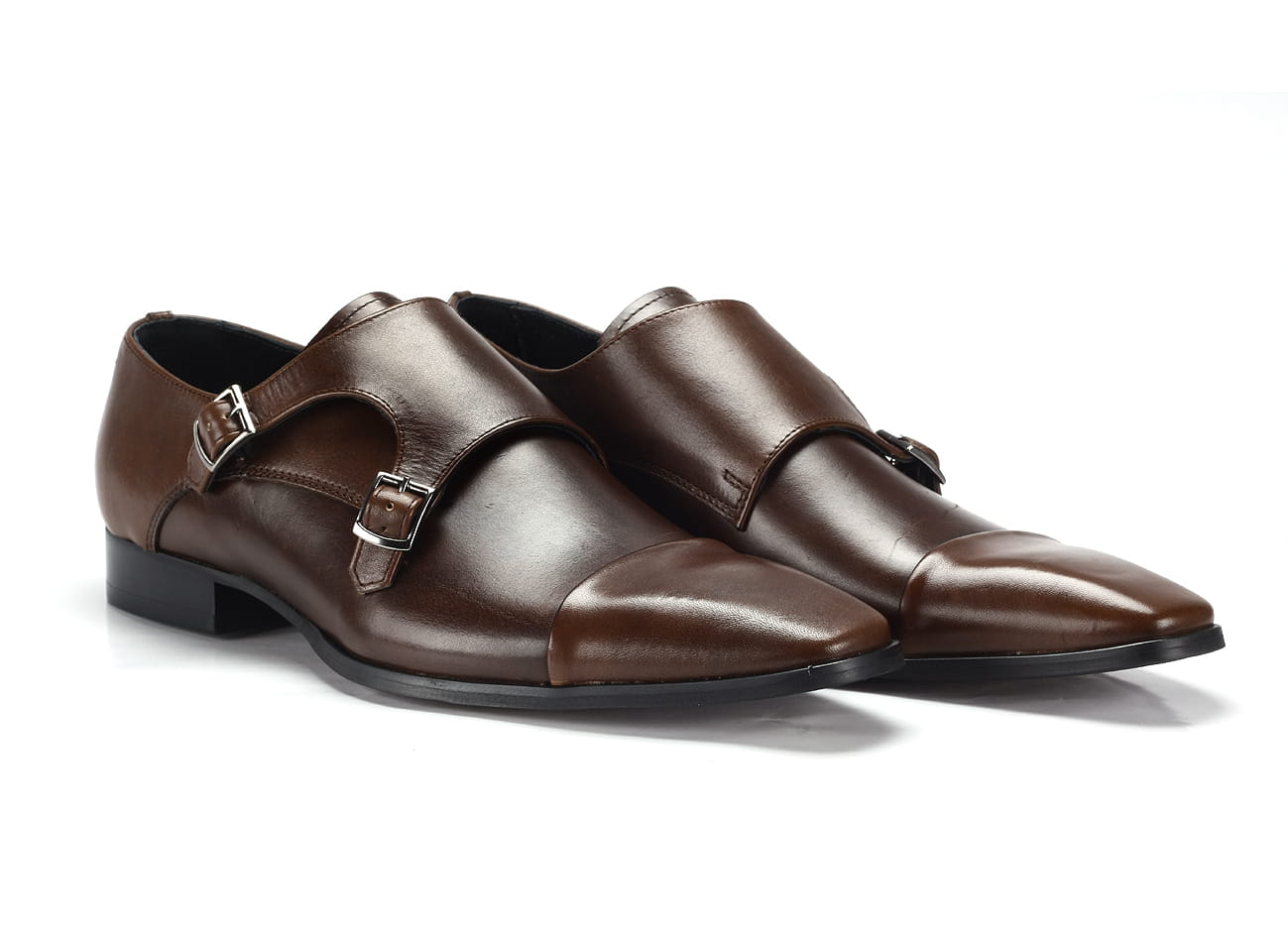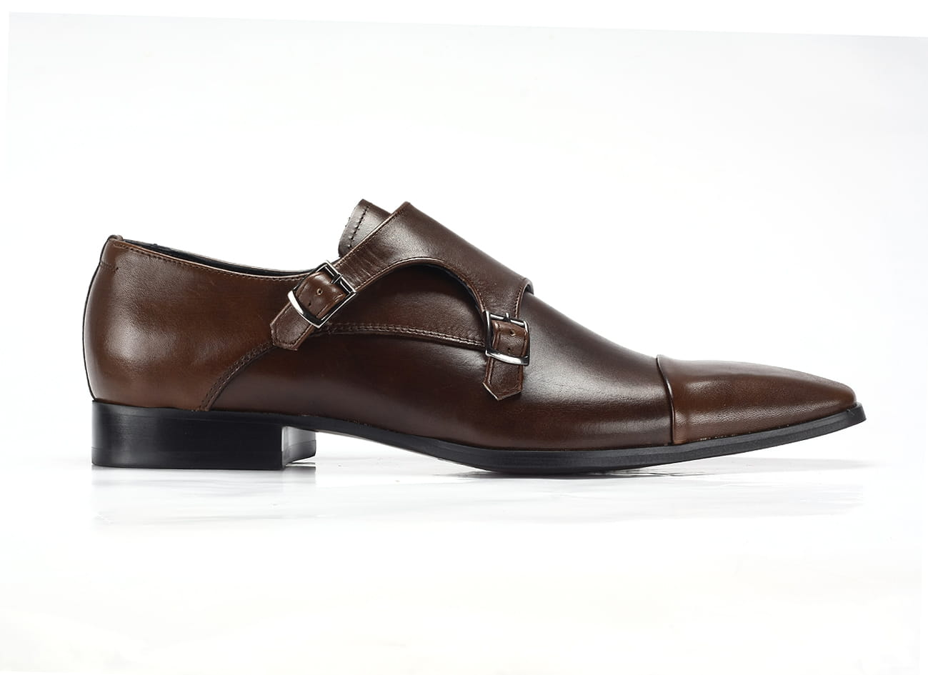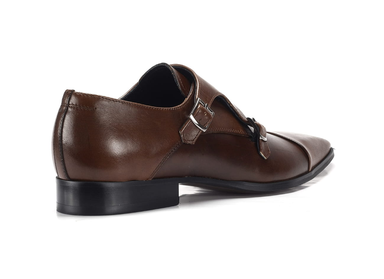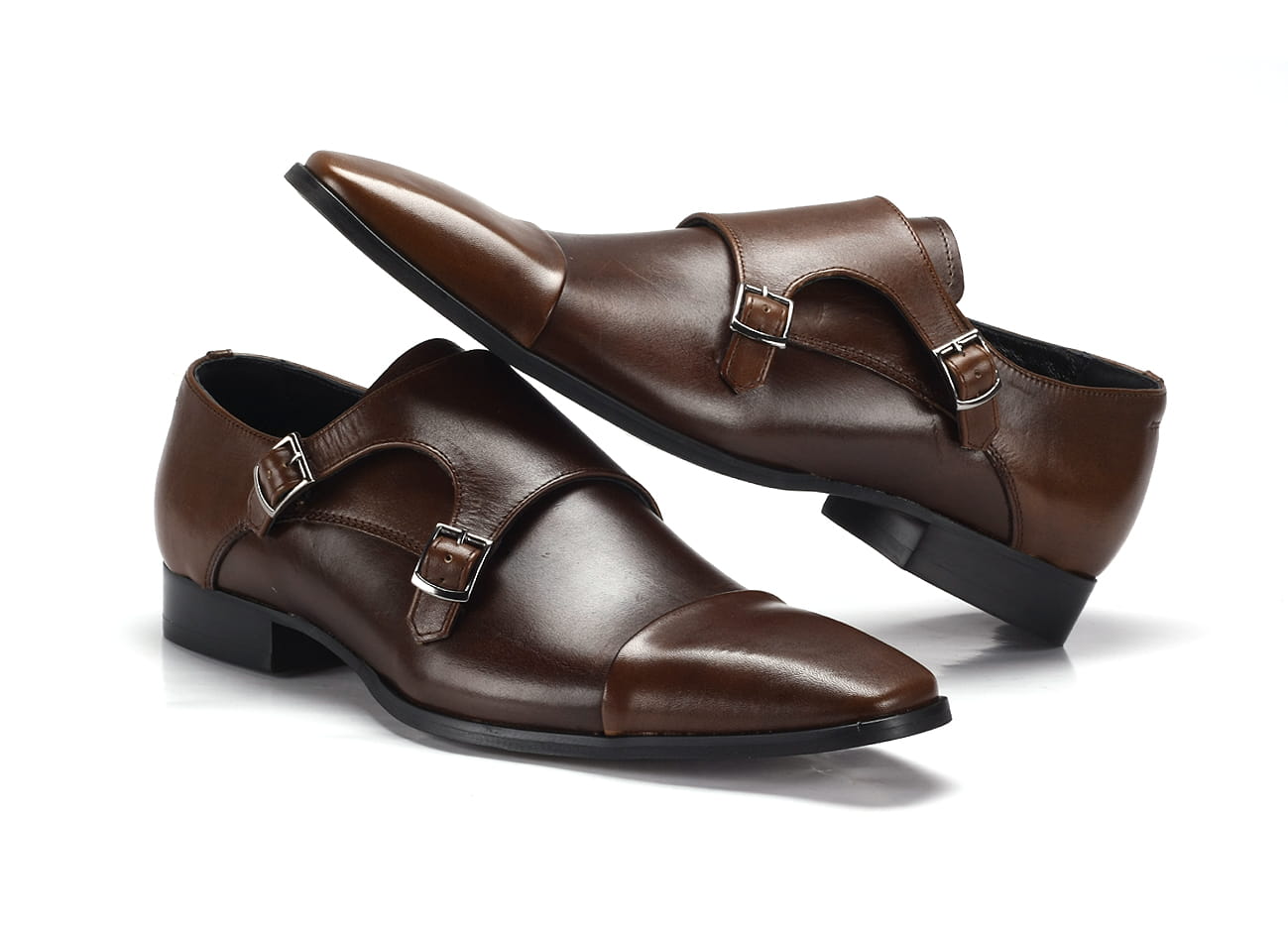 Wsuwane obuwie półbuty męskie buty obuwie biznesowe wizytowe brązowe skórkowe sprzączki wyższy obcas