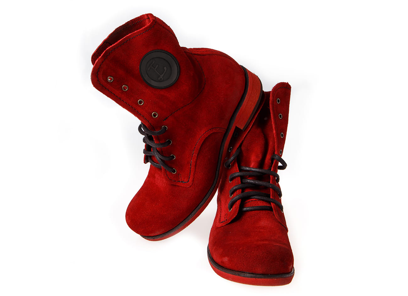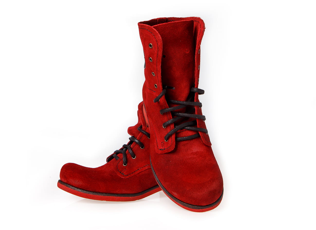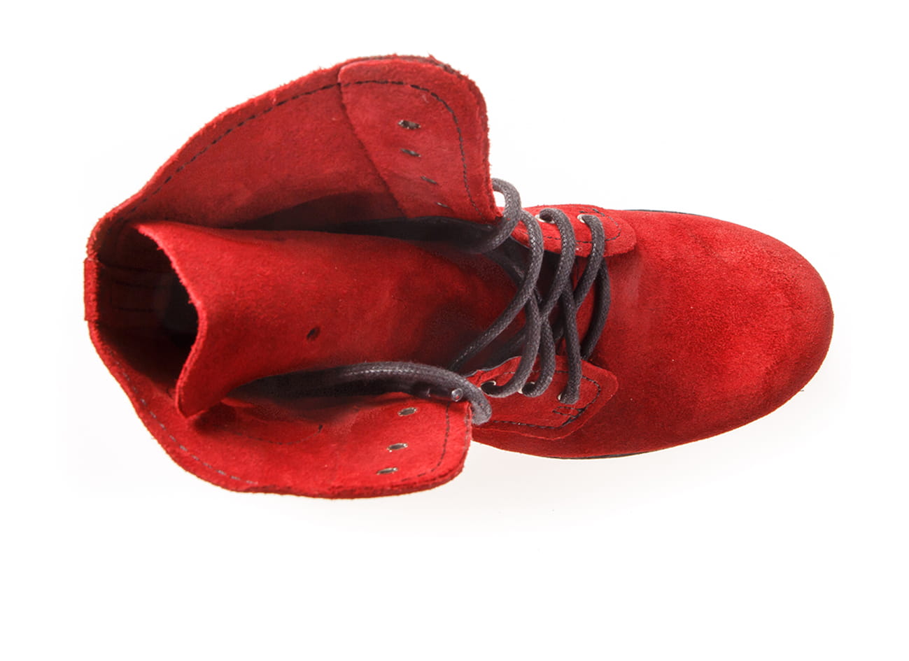 Wysoki skórzane glany czerwone zamsz sznurowane do kostki młodzieżowe damskie męskie skórzane 36-46 [MODEL: 736-11 Rosso camoscio]