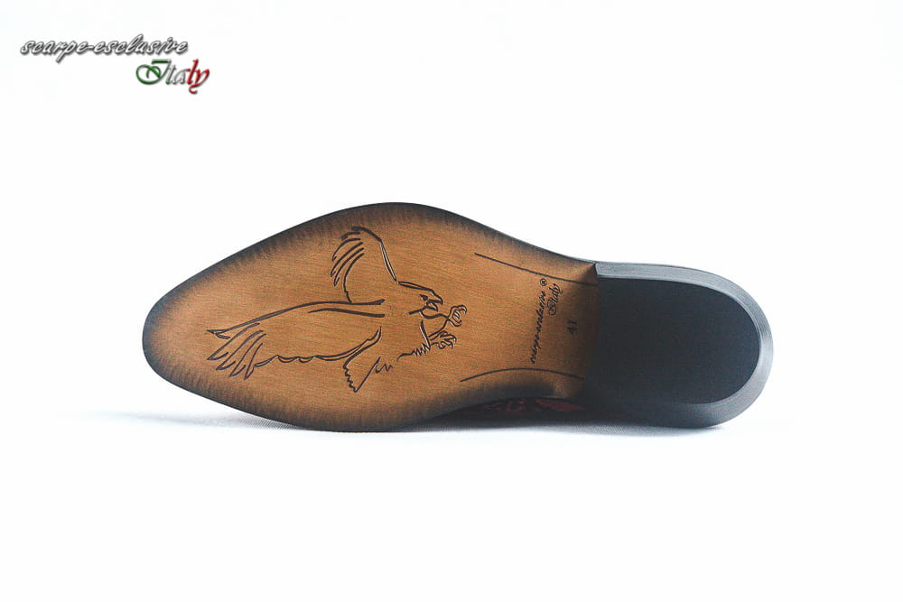 Obuwie wykonane z naturalnej skóry wytłaczanej.