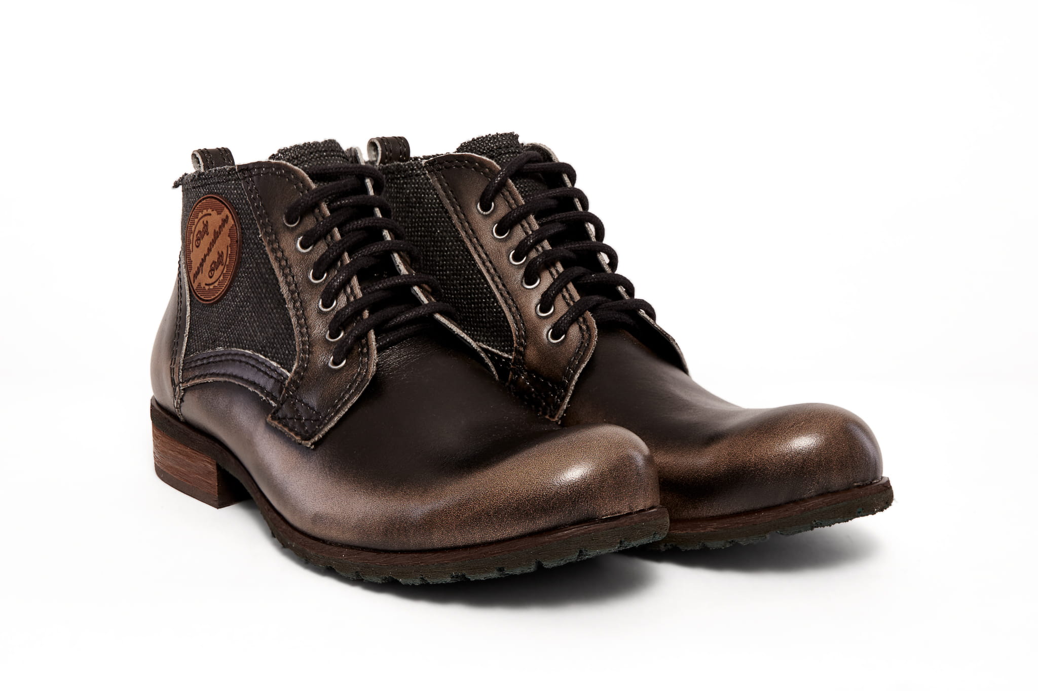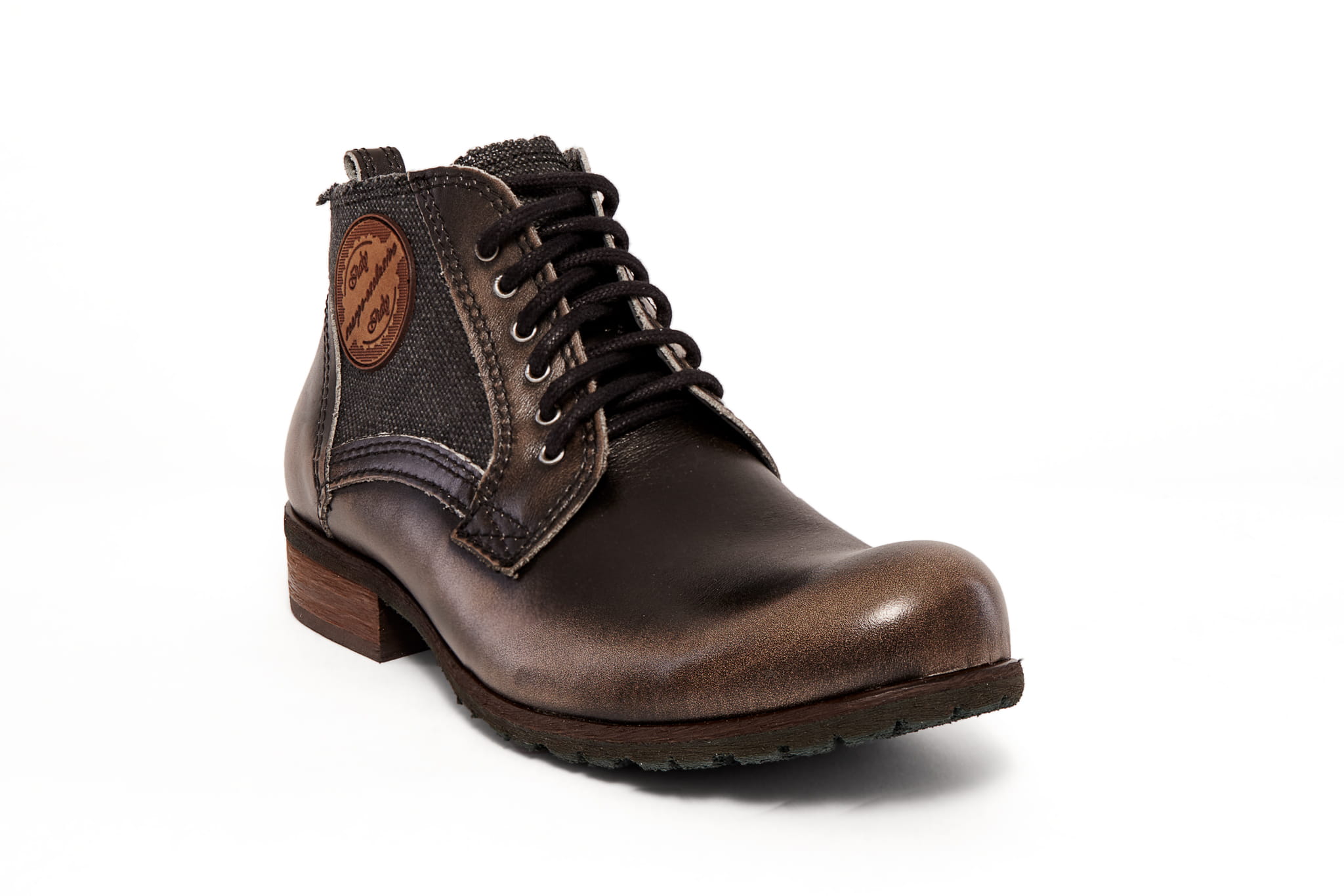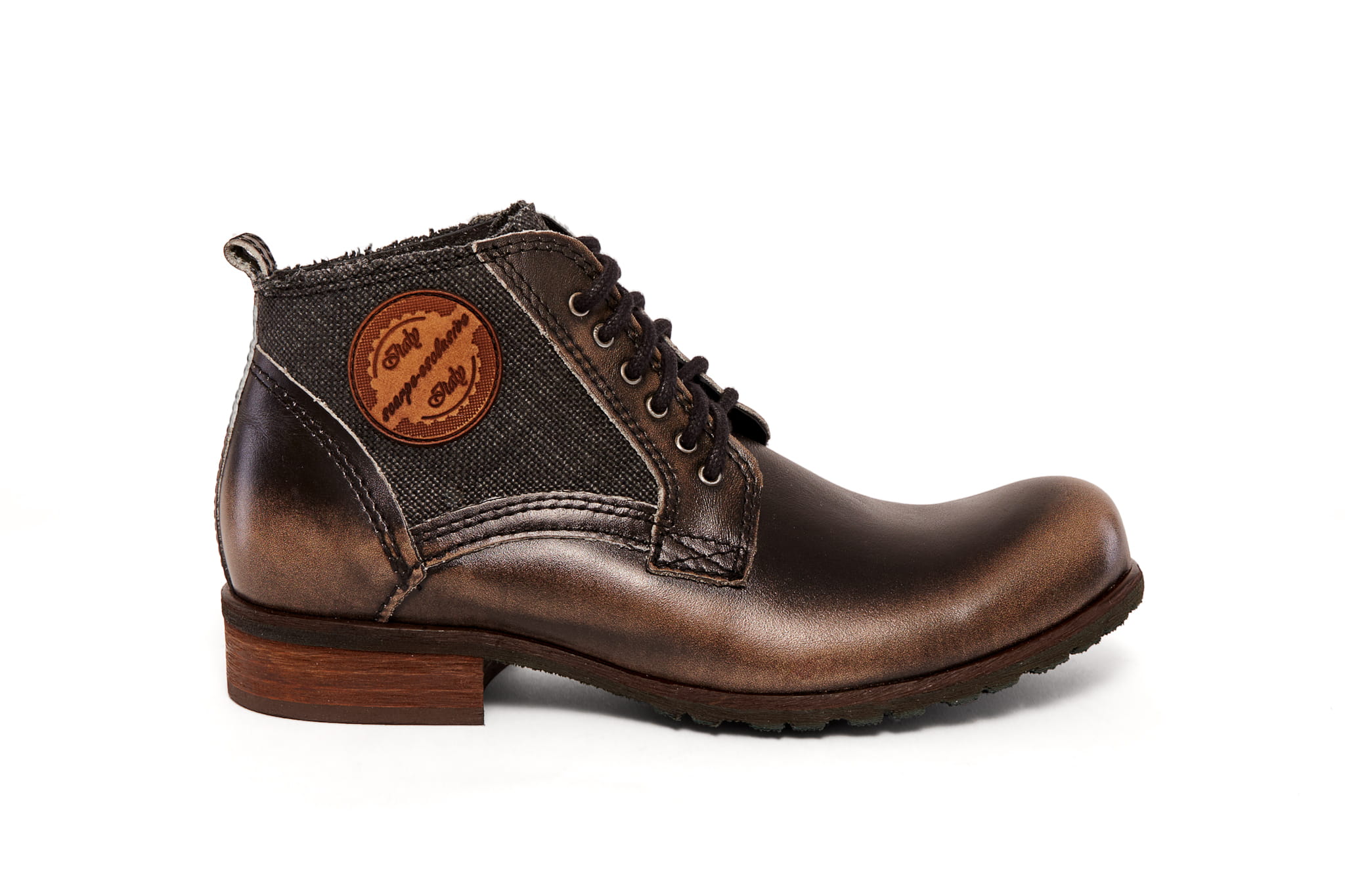 Ten model to idealne połączenie bydlęcej skóry z płóciennym materiałem.